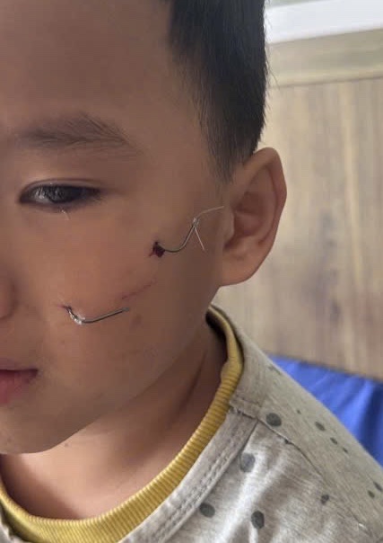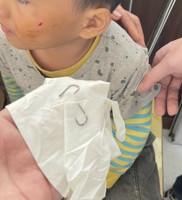 Trẻ nhỏ bị lưỡi câu cá móc vào vùng má trong quá trình đi câu cá cùng bạn bè