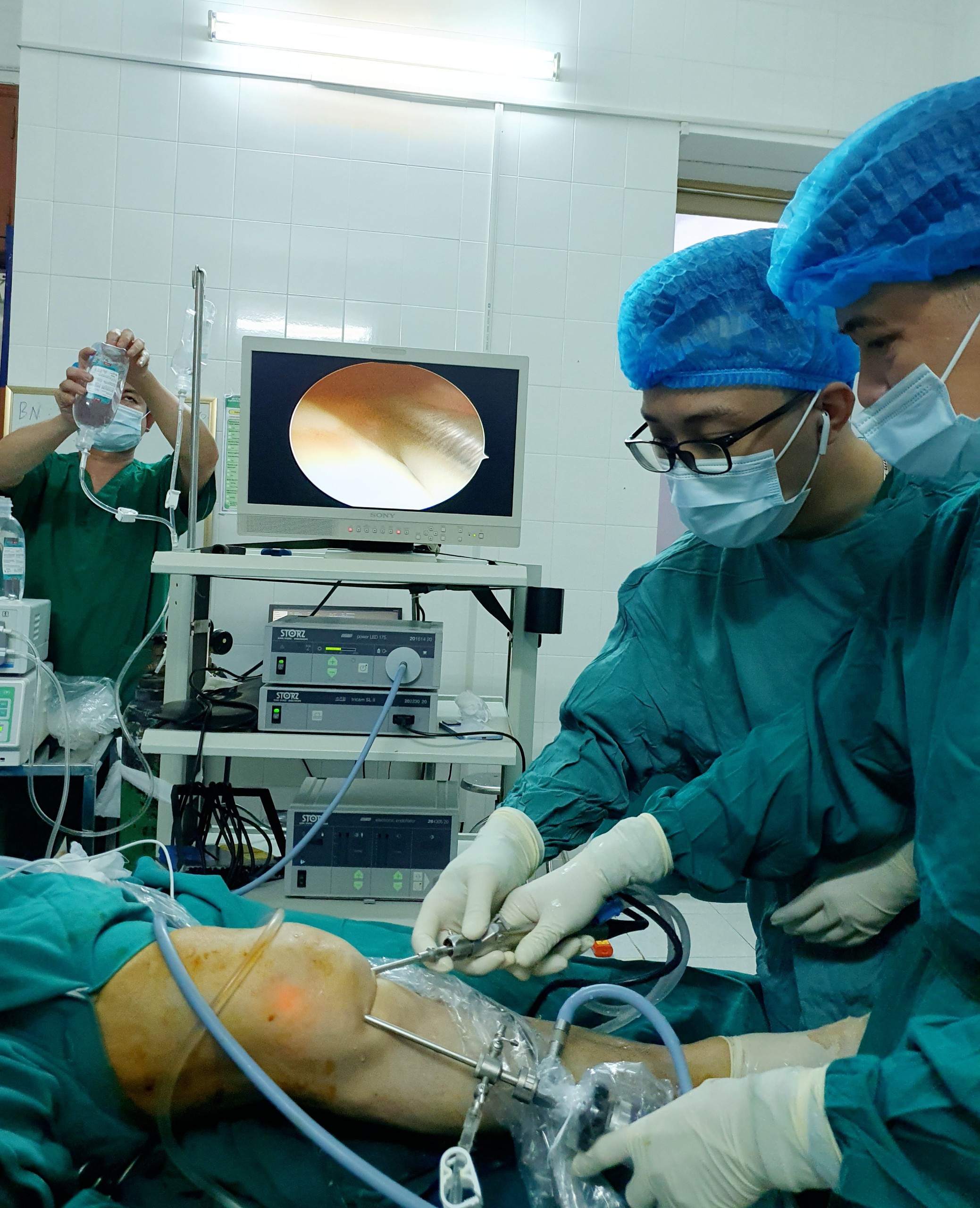 Bệnh nhân nữ 72 tuổi (thị trấn Vĩnh Lộc) bị rách sụn chêm khớp gối, đây là trường hợp bệnh lý chấn thương của khớp gối đã được phẫu thuật thành công bước đầu bằng kỹ thuật nội soi. Cùng với sự hỗ trợ của chuyên gia từ Bệnh viện Đại học Y Hà Nội, TTYT huyện Chiêm Hóa sẽ tiếp tục phối hợp và triển khai thường xuyên hơn trong thời gian tới./