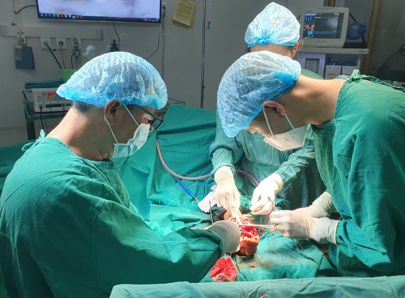 Các BS đang tiến hành phẫu thuật cho bệnh nhân