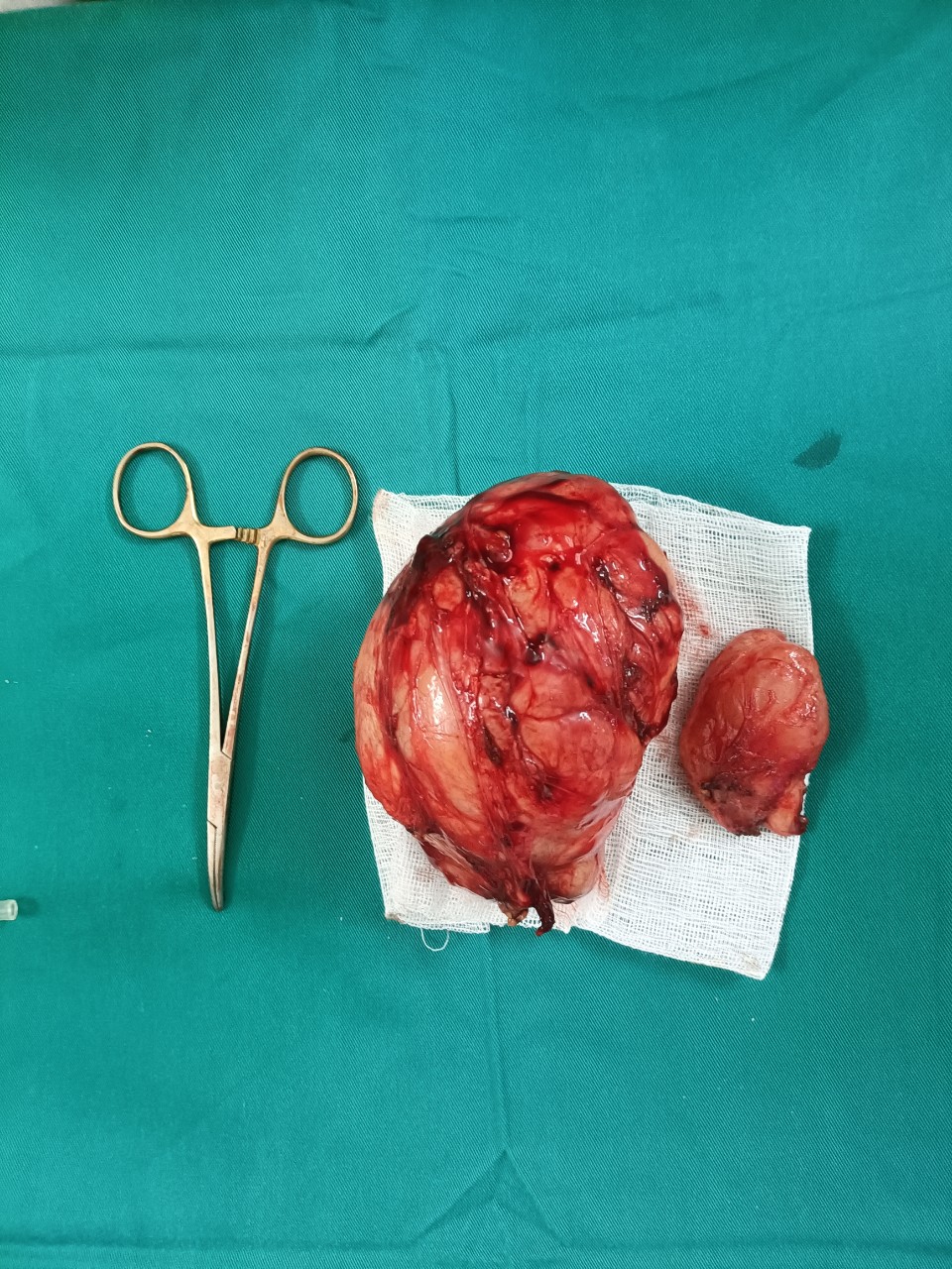Các bác sỹ khoa Ngoại – TTYT huyện Chiêm Hóa tiến hành mổ tách lấy khối u thành công. Hiện tại, sức khỏe của người bệnh đang trong thời gian hồi phục./