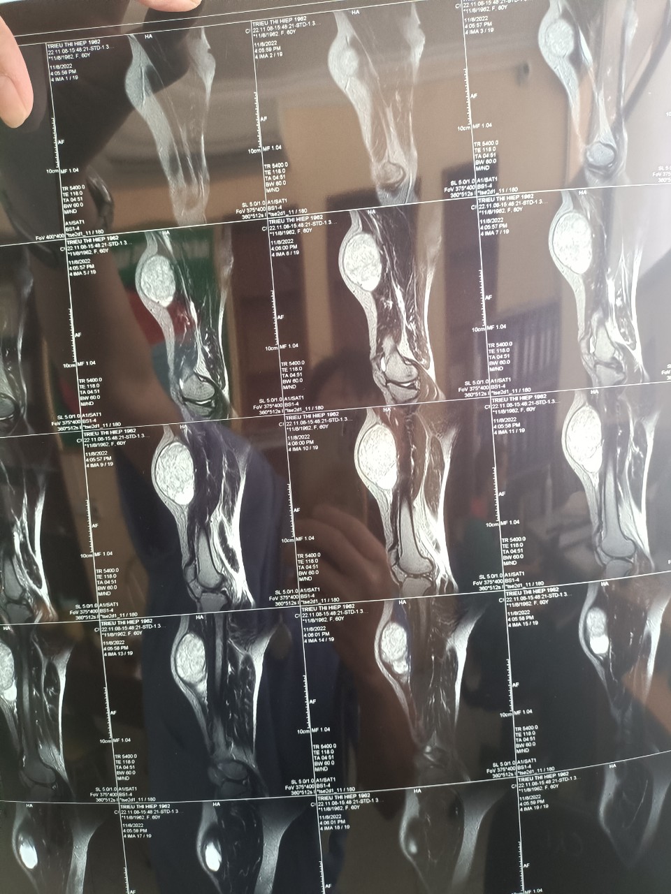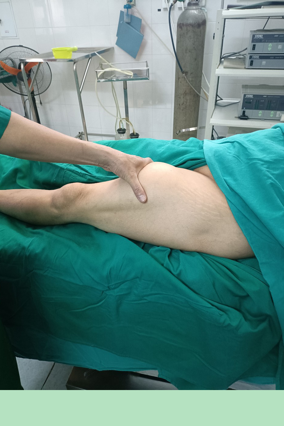 Bệnh nhân nữ có khối u đùi trái xuất hiện 2 năm nay, ngày càng to dần lên, hạn chế trong việc đi lại, ảnh hưởng nhiều đến sinh hoạt hàng ngày. Bệnh nhân nhập viện trong tình trạng khối u to, đau nhức. Sau khi tiếp nhận, bệnh nhân được các Bác sỹ chỉ định siêu âm và sinh thiết khối u để chẩn đoán và điều trị. Kết quả cho thấy: Bệnh nhân có khối u xơ cơ lành tính ở vùng đùi trái, kích thước 20x30. Bệnh nhân đã được hội chẩn chỉ định phẫu thuật lấy bỏ khối u.