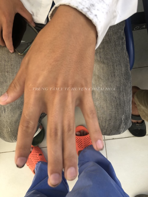 Bàn tay phải của bệnh nhân có 2 ngón 3 và 4 dính với nhau ở phần kẽ ngón