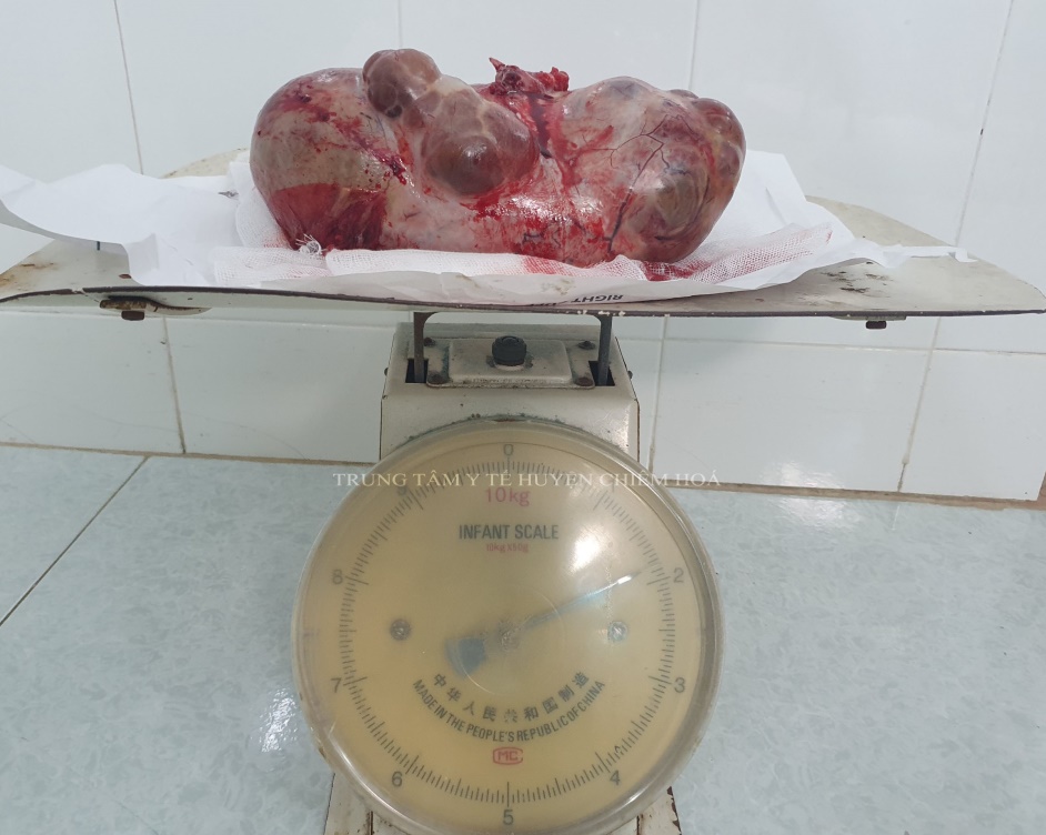 TTYT huyện Chiêm Hoá vừa phẫu thuật thành công khối u buồng trứng nặng gần 2kg cho nữ bệnh nhân 58 tuổi.