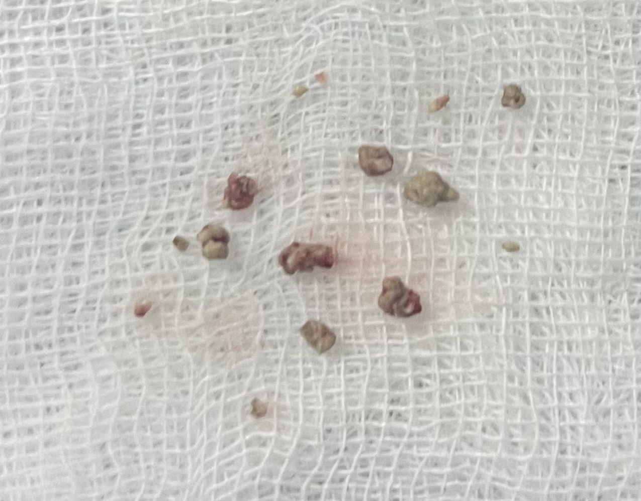 Nhiều sỏi được gắp ra tại tuyến dưới hàm trái của BN