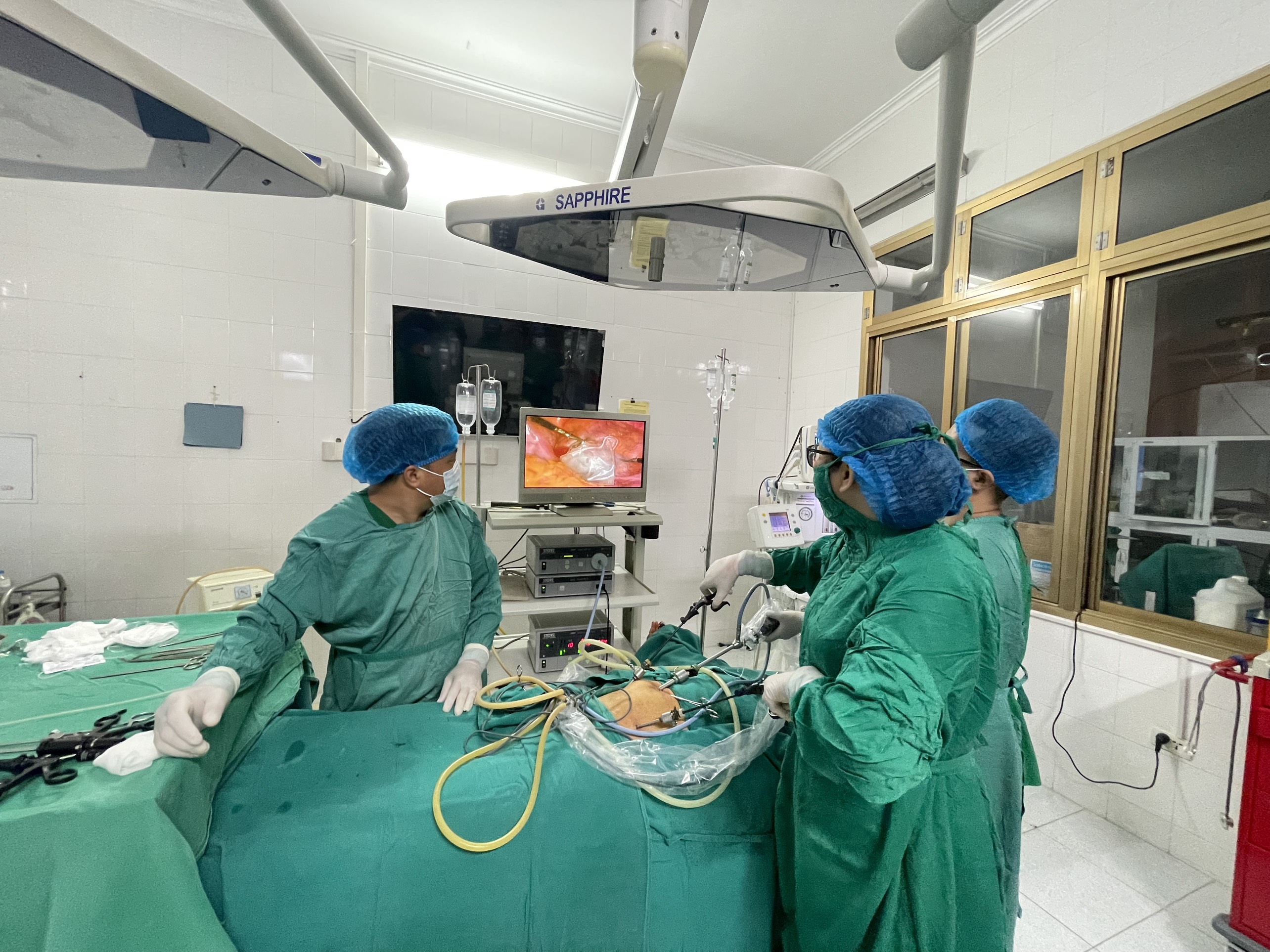 Bệnh nhân M.T. N (26 tuổi – Lâm Bình) phát hiện u nang buồng trứng cách đây 03 năm, thời gian gần đây đau bụng âm ỉ vùng hạ vị, BN đến TTYT huyện Chiêm Hóa để khám và điều trị. Qua thăm khám, siêu âm bệnh nhân được chẩn đoán u nang buồng trứng phải, có KT~45x57mm. BN được chỉ định phẫu thuật nội soi cắt khối u nang để tránh những biến chứng nguy hiểm có thể xảy ra.