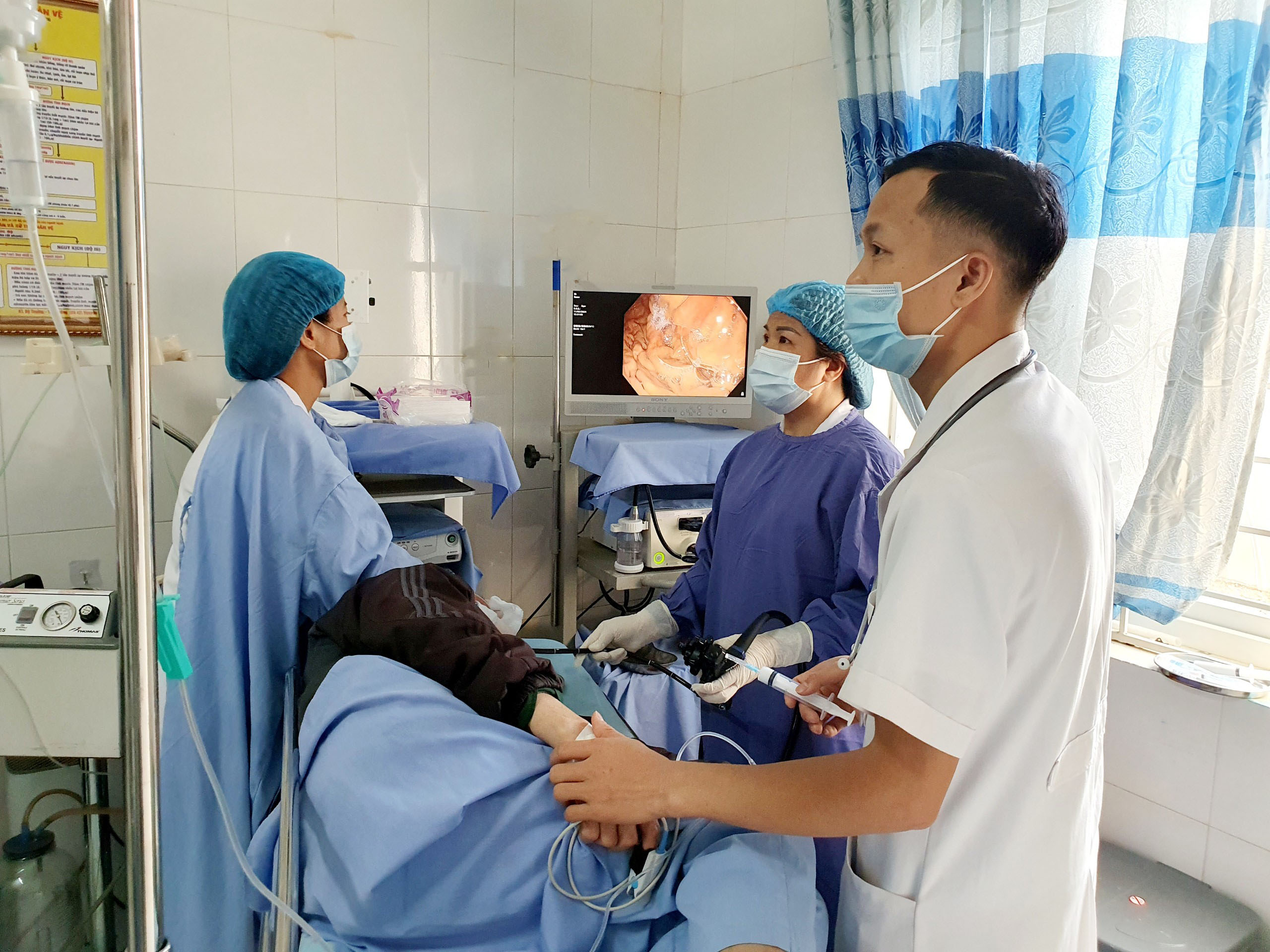 Các BS TTYT huyện Chiêm Hóa đang tiến hành nội soi dạ dày cho BN