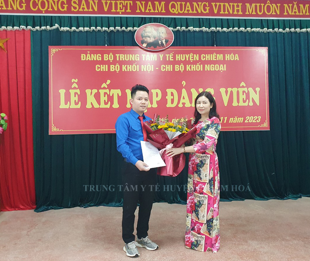 Chiều ngày 14/11/2023, Chi bộ khối Nội, Chi bộ khối Ngoại – Đảng bộ Trung tâm Y tế huyện Chiêm Hoá vừa tổ chức Lễ kết nạp đảng viên mới cho quần chúng ưu tú: Ma Doãn Đông, Ma Văn Huân, Hà Công Tiến, Hoàng Thị Liên.