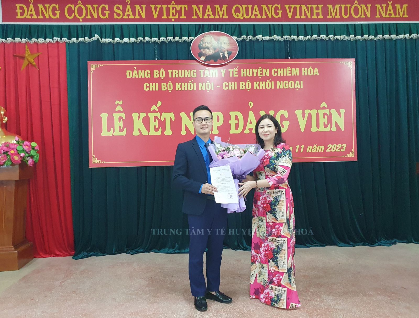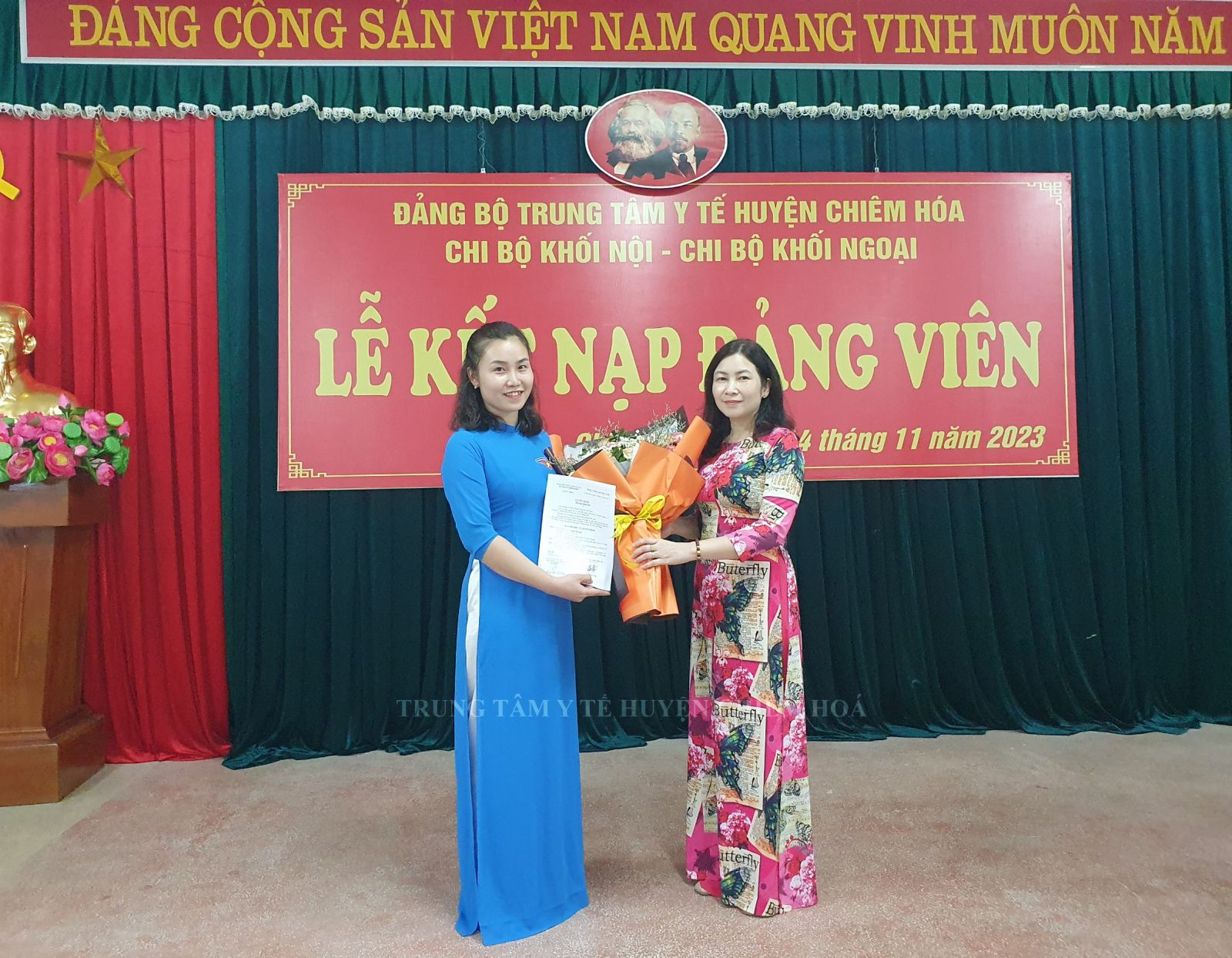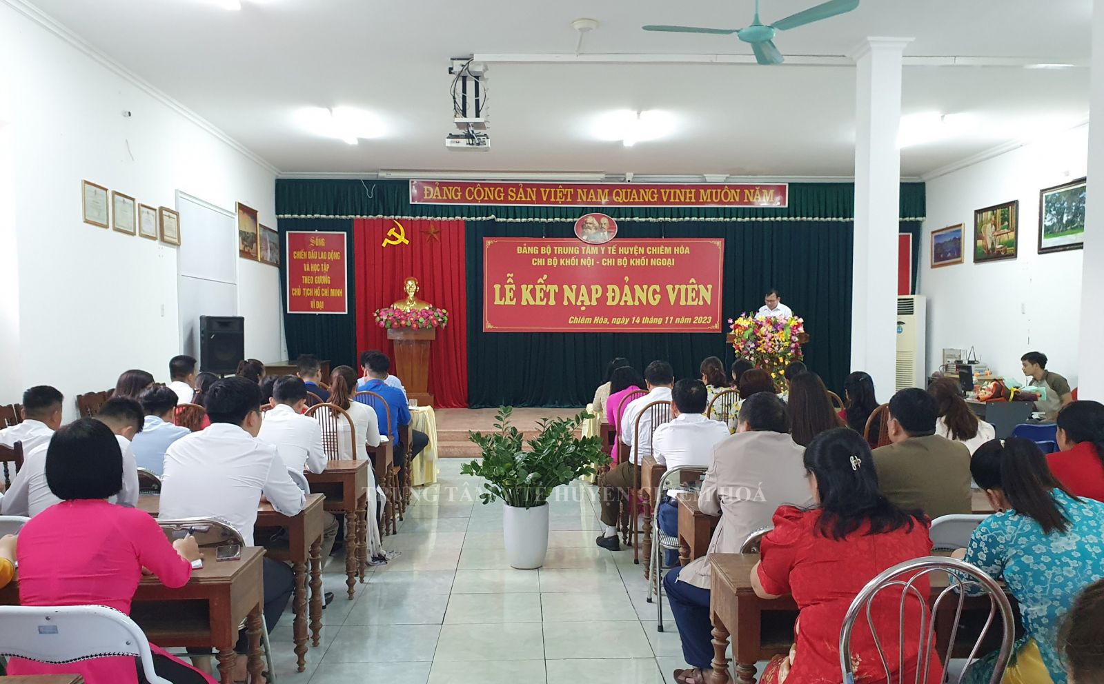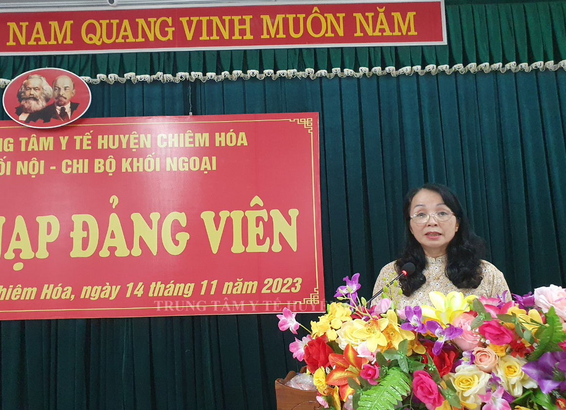 Đến dự và phát biểu tại buổi lễ, đồng chí Hà Thị Bích Ngọc – UV BCH đảng bộ huyện, Phó Bí thư Đảng uỷ, Phó Giám Đốc Trung tâm Y tế huyện Chiêm Hoá chúc mừng 4 đồng chí sau một thời gian được bồi dưỡng, thử thách đã vinh dự được đứng trong hàng ngũ của Đảng Cộng sản Việt Nam. Đồng thời mong muốn các đồng chí đảng viên mới không ngừng phấn đấu nâng cao trình độ nghiệp vụ chuyên môn; giữ vững phẩm chất chính trị, tư tưởng; phải luôn xác định đặt lợi ích của tập thể lên trên hết; đặc biệt là thực hiện nghiêm quy định về những điều đảng viên không được làm./