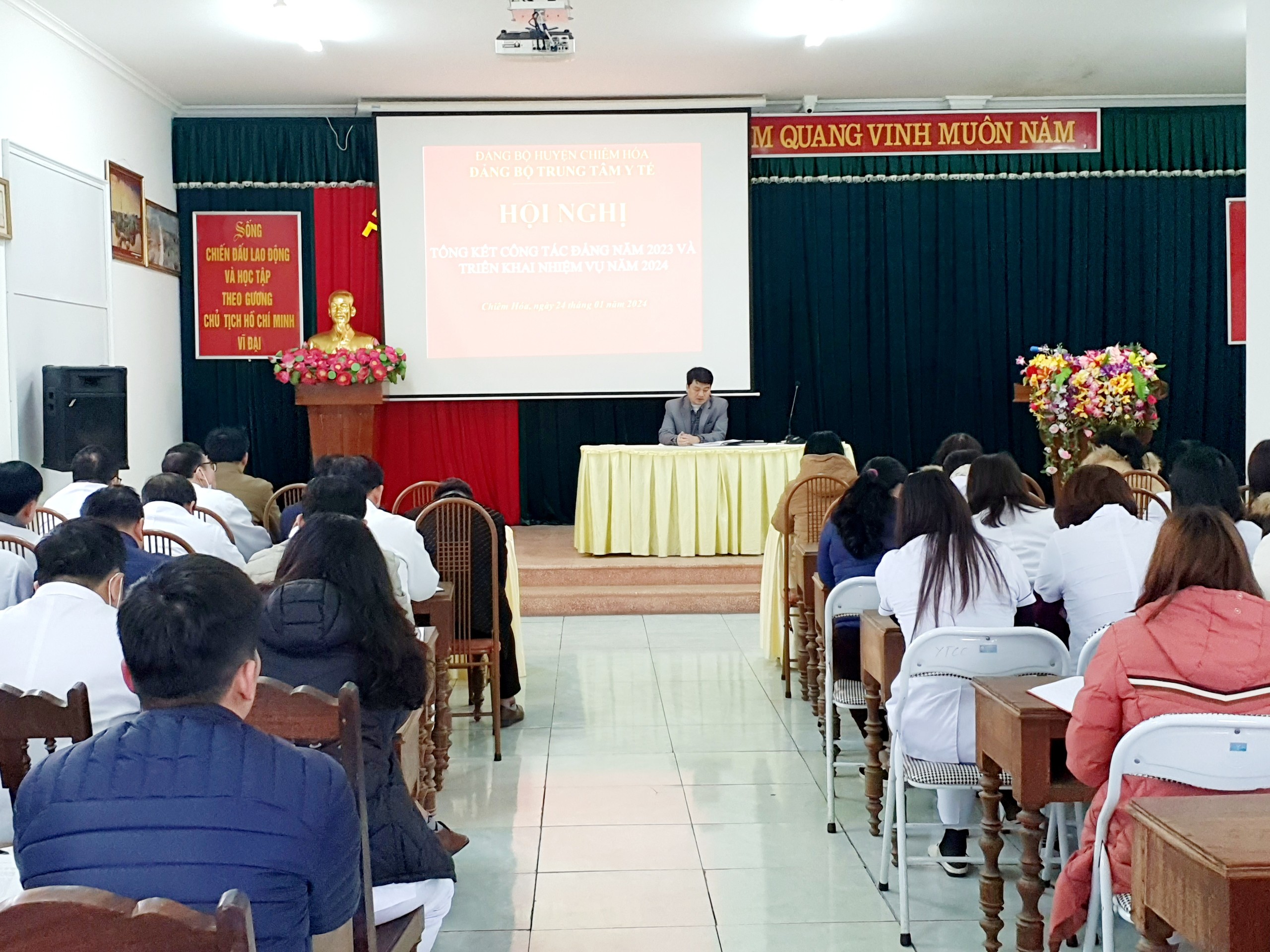 Chiều ngày 24/01/2024, Đảng bộ Trung tâm Y tế huyện Chiêm Hoá tổ chức Hội nghị tổng kết công tác Đảng năm 2023 và triển khai nhiệm vụ năm 2024. Tham dự Hội nghị có BS CKII. Hà Văn Linh - Bí thư Đảng ủy, Giám đốc TTYT; cùng các đồng chí trong Ban chấp hành Đảng ủy và toàn thể Đảng viên thuộc Đảng bộ Trung tâm Y tế huyện Chiêm Hoá.