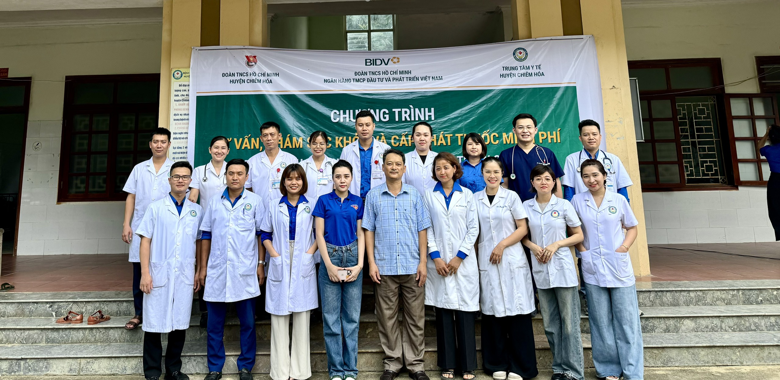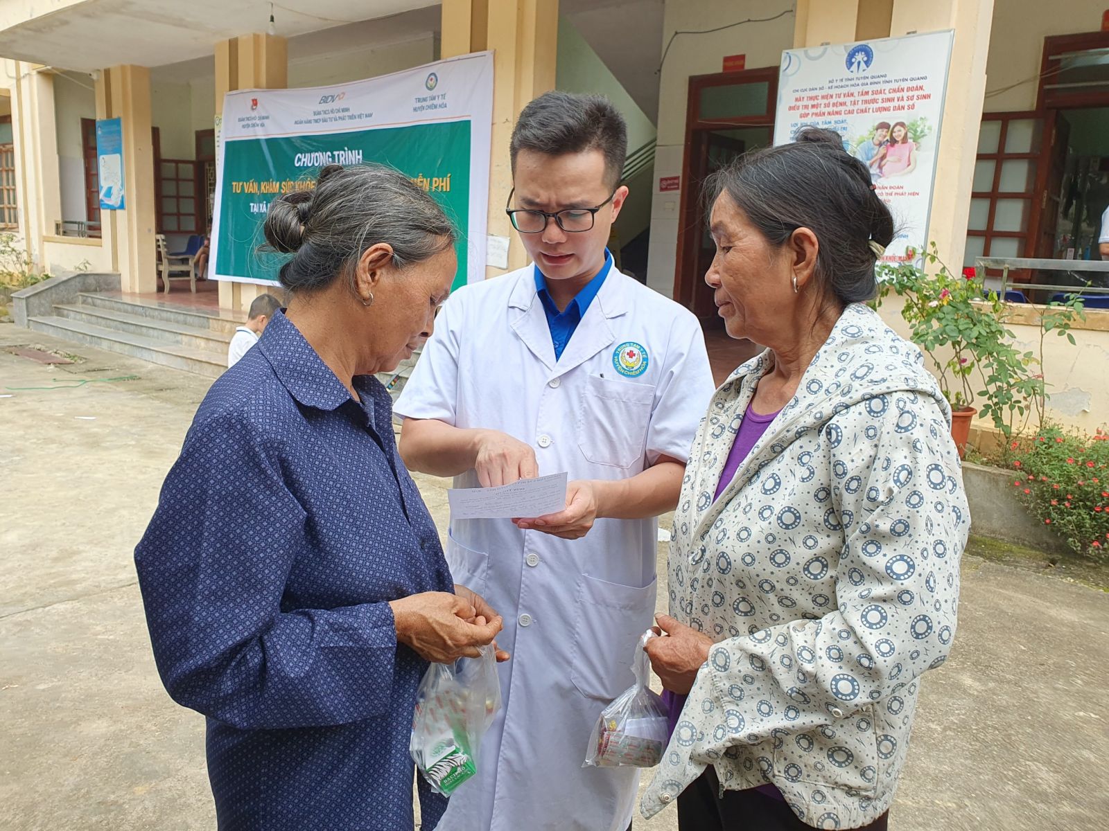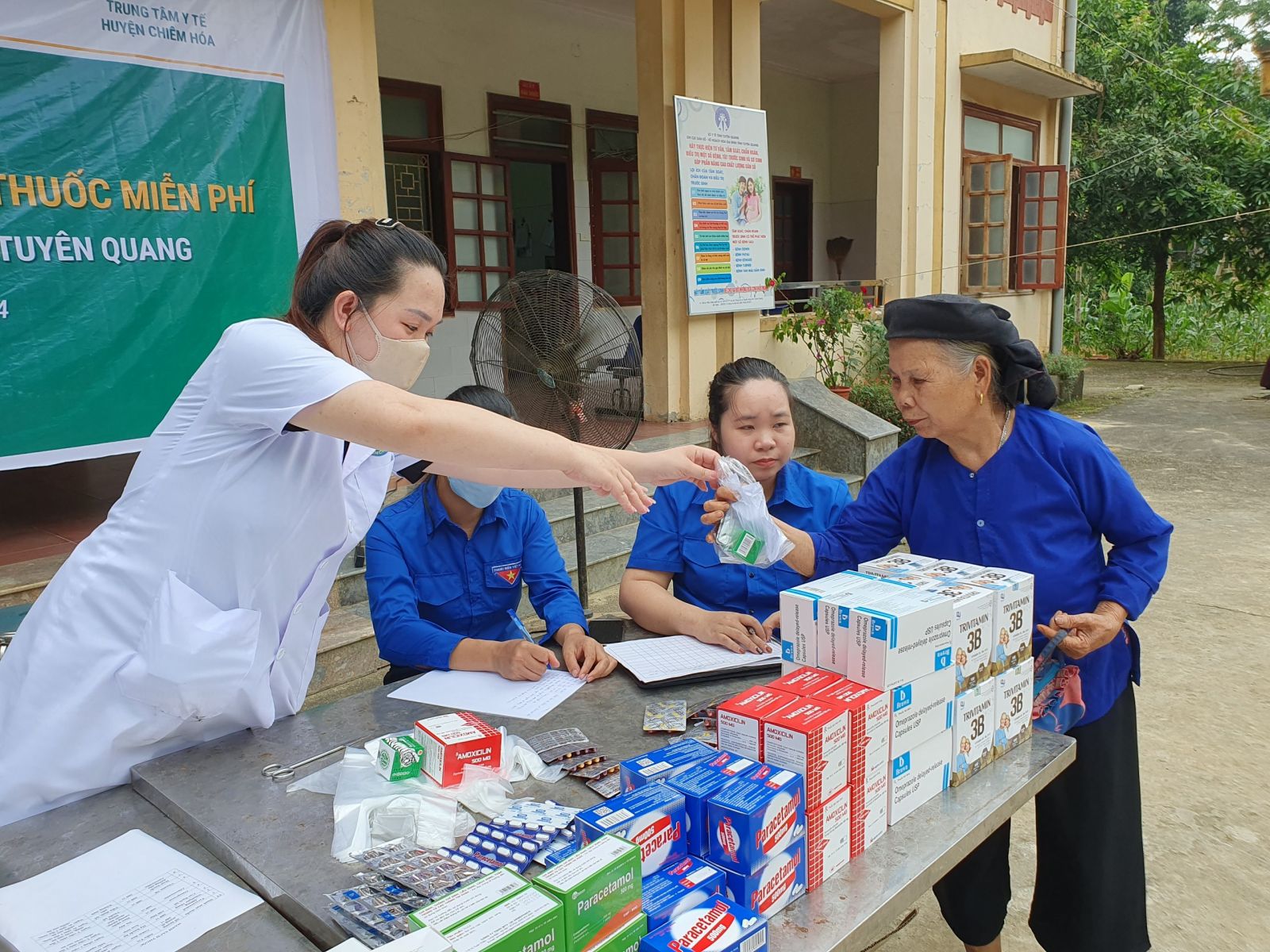 Đoàn cơ sở TTYT huyện Chiêm Hoá khám, cấp thuốc miễn phí trên địa bàn xã Linh Phú.