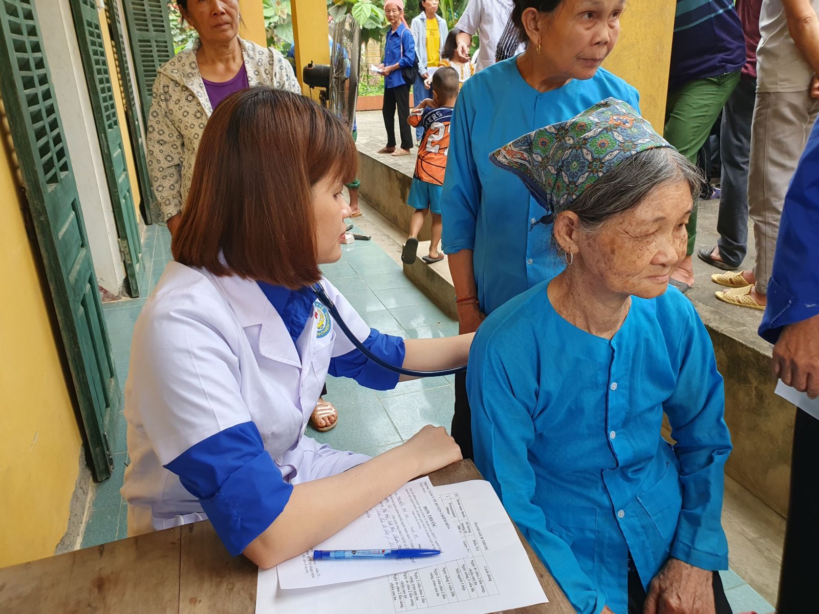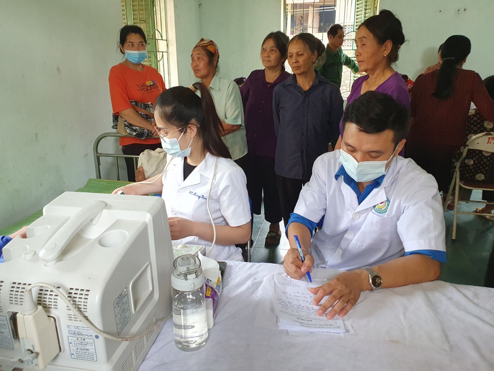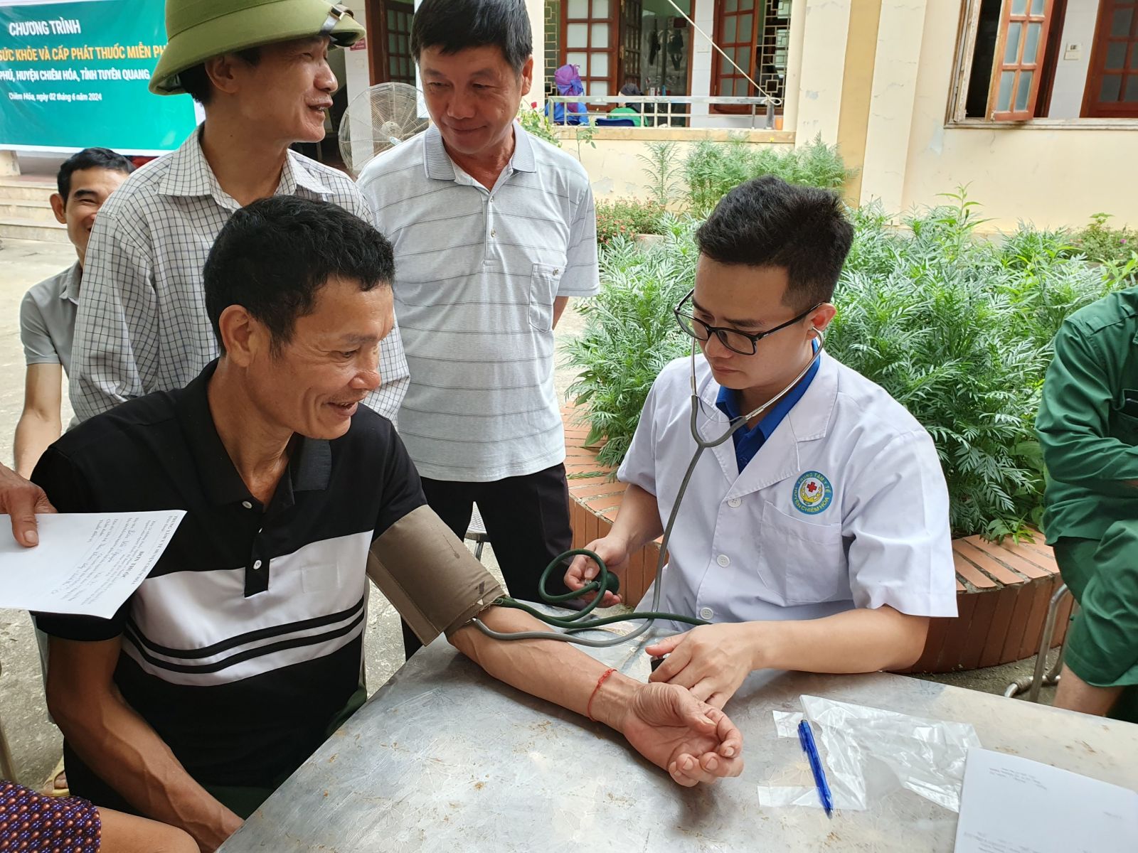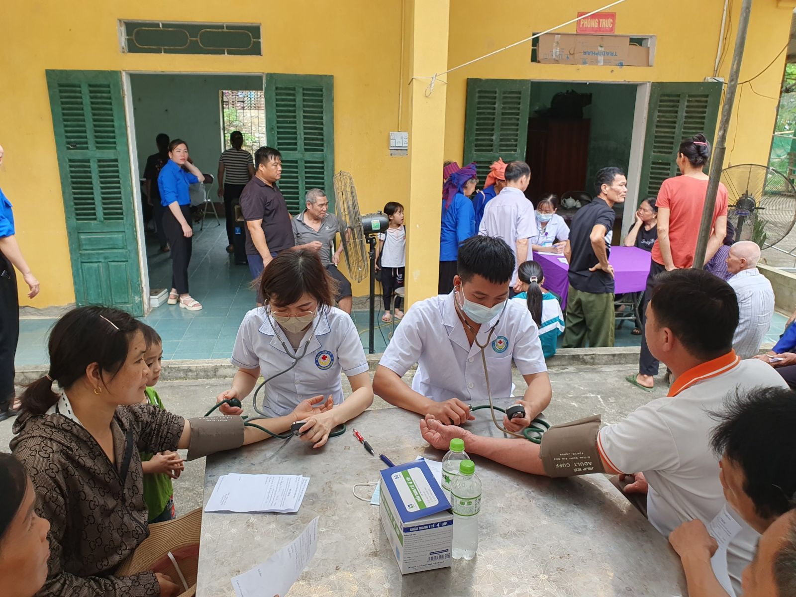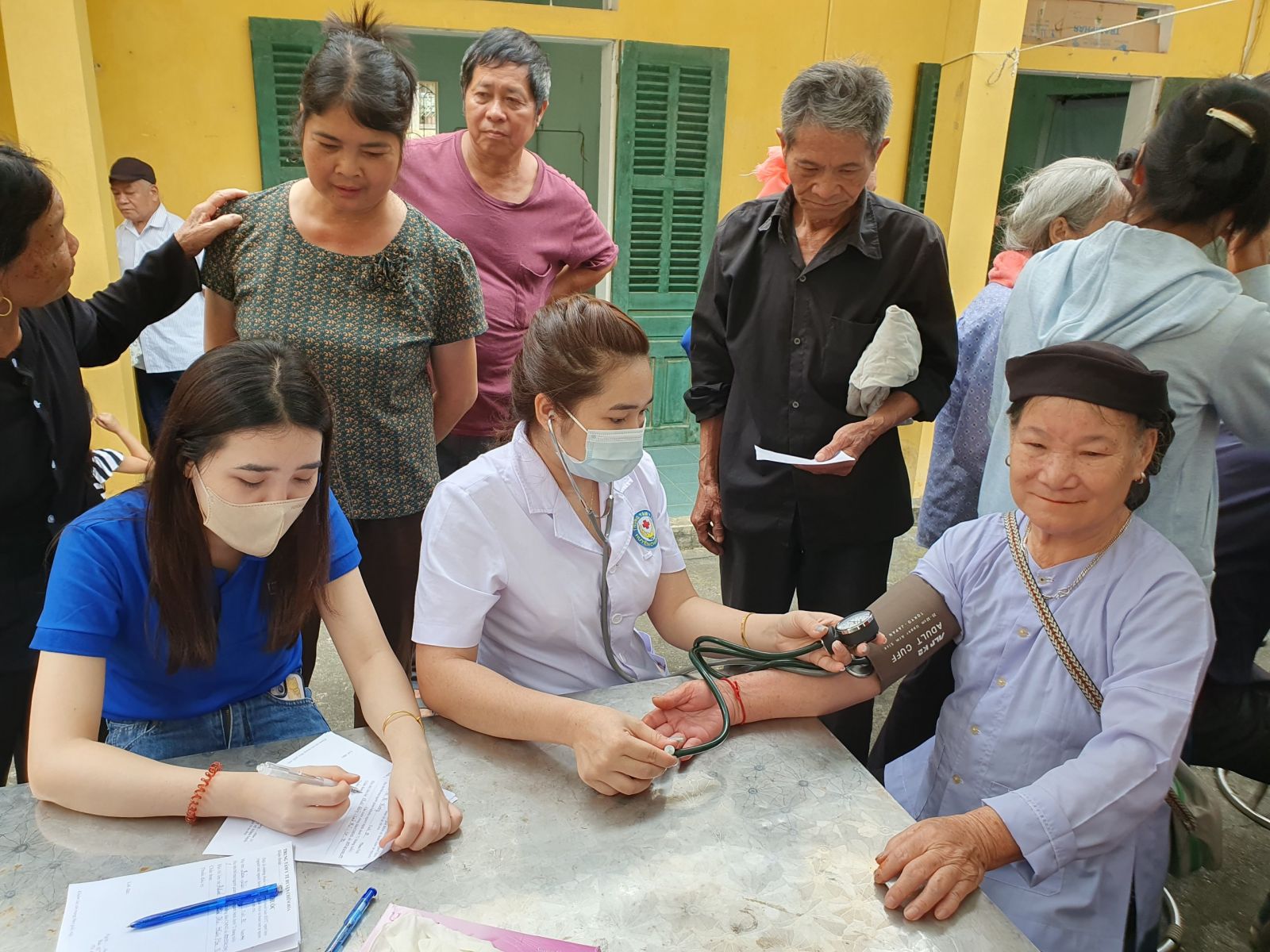 Đo HA cho người dân đến khám bệnh