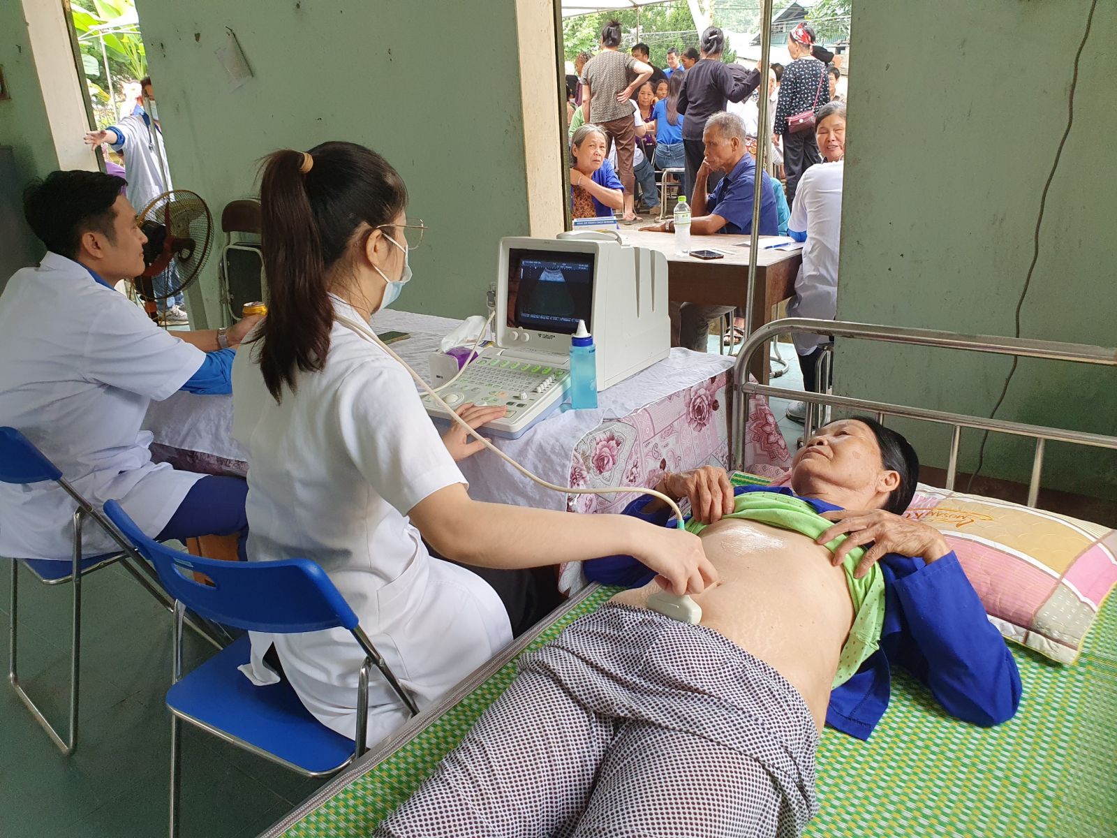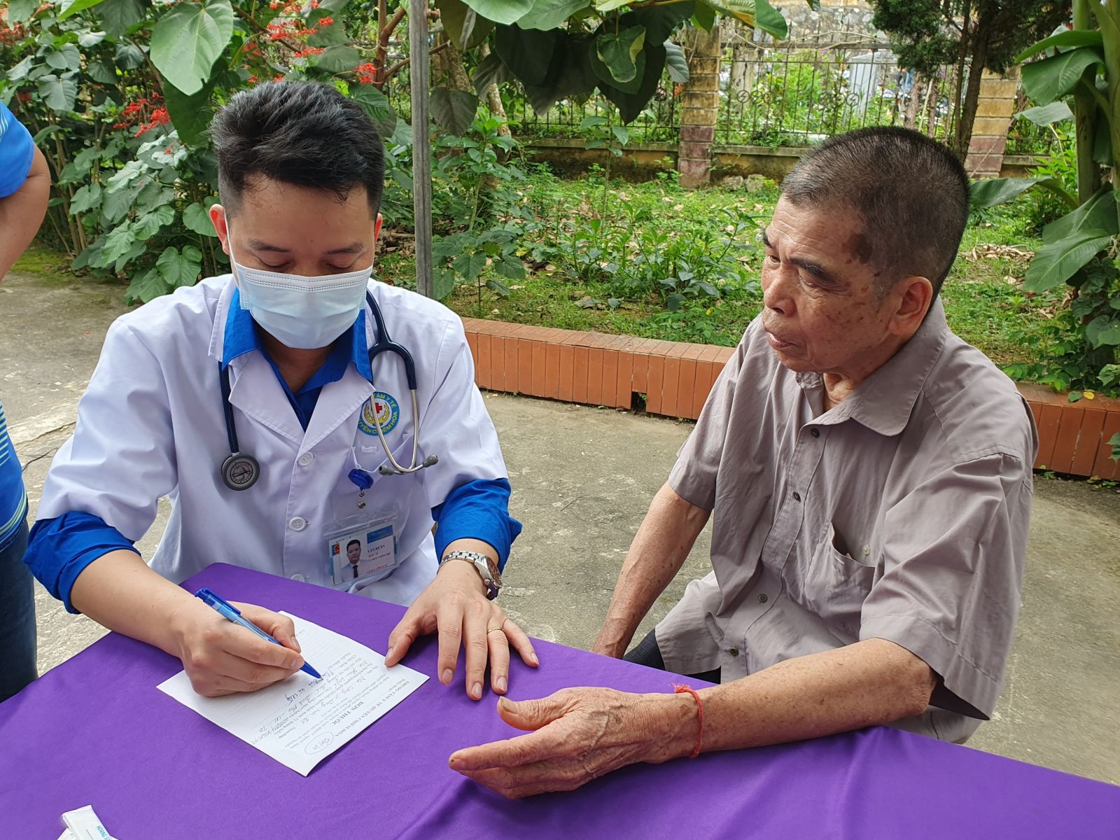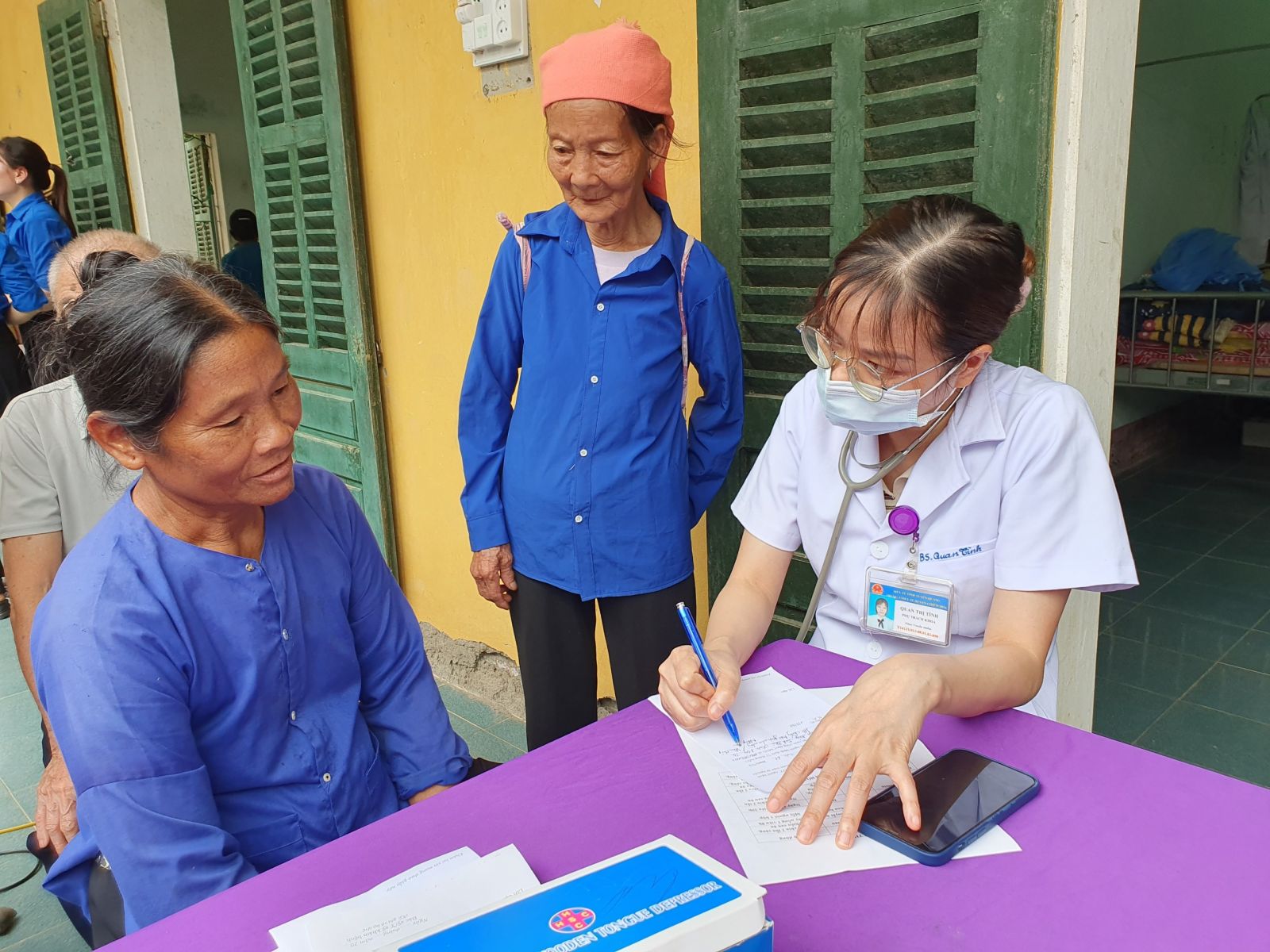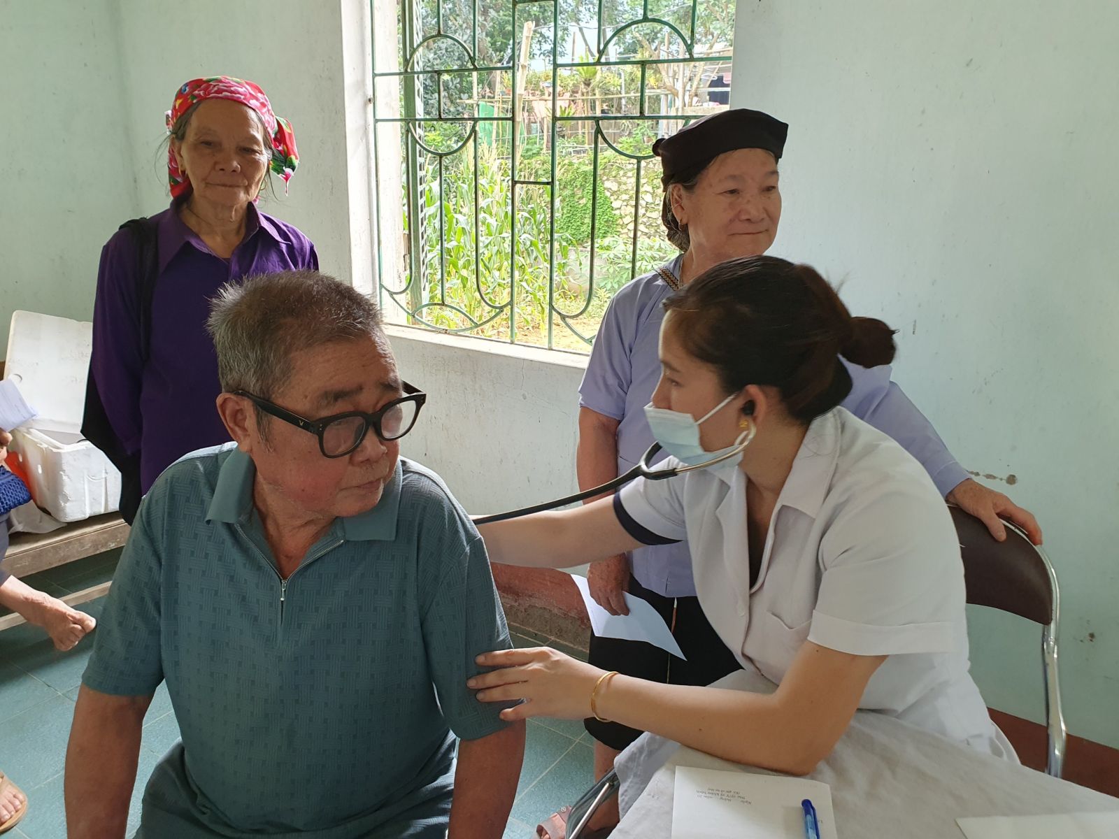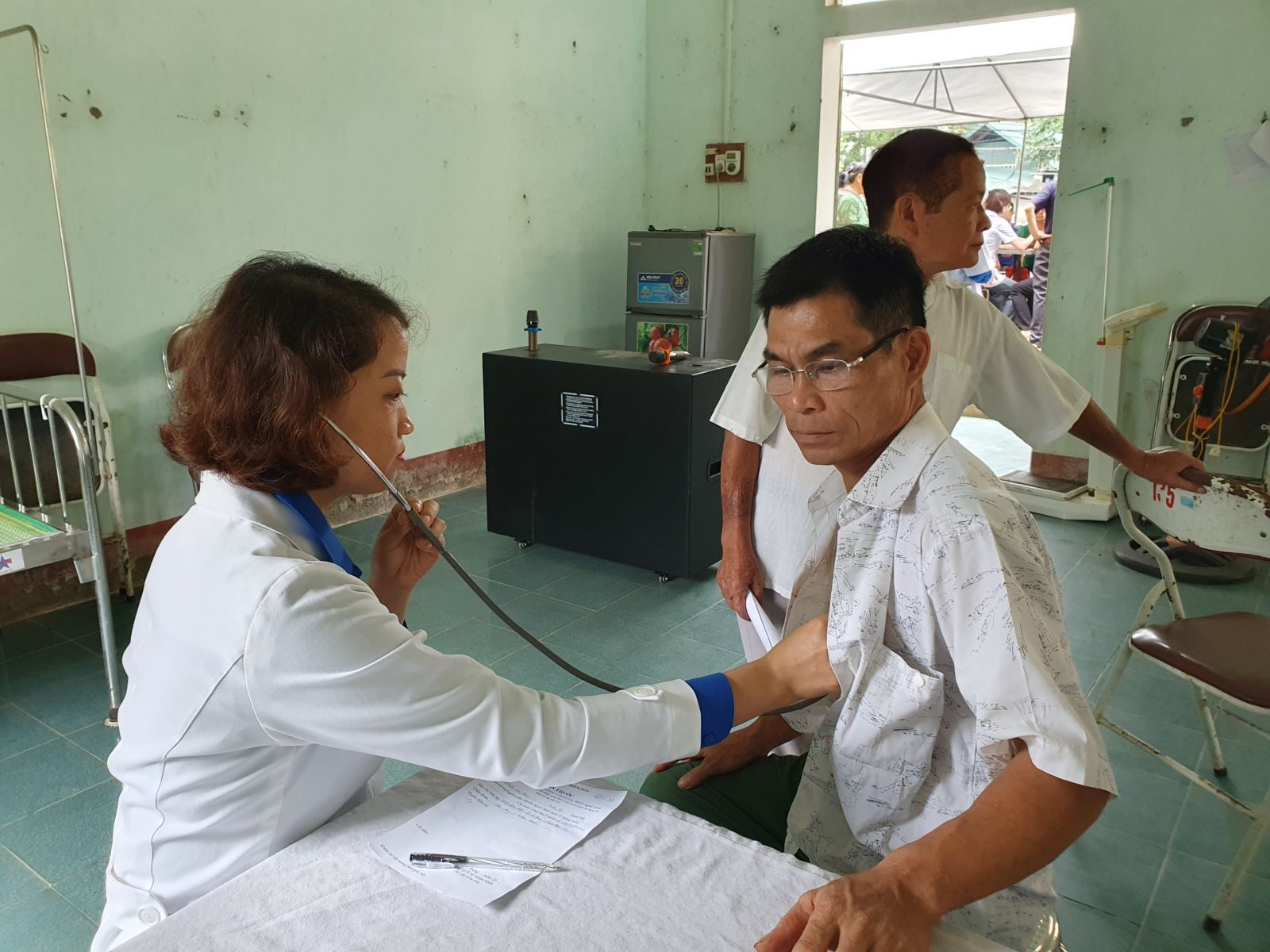 Đo HA cho người dân đến khám bệnh