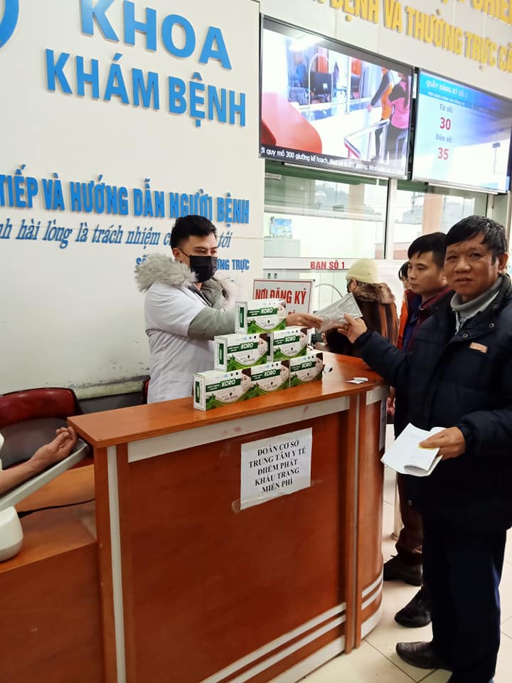 Đoàn cơ sở TTYT huyện Chiêm Hóa phát khẩu trang miễn phí cho nhân dân đến khám bệnh