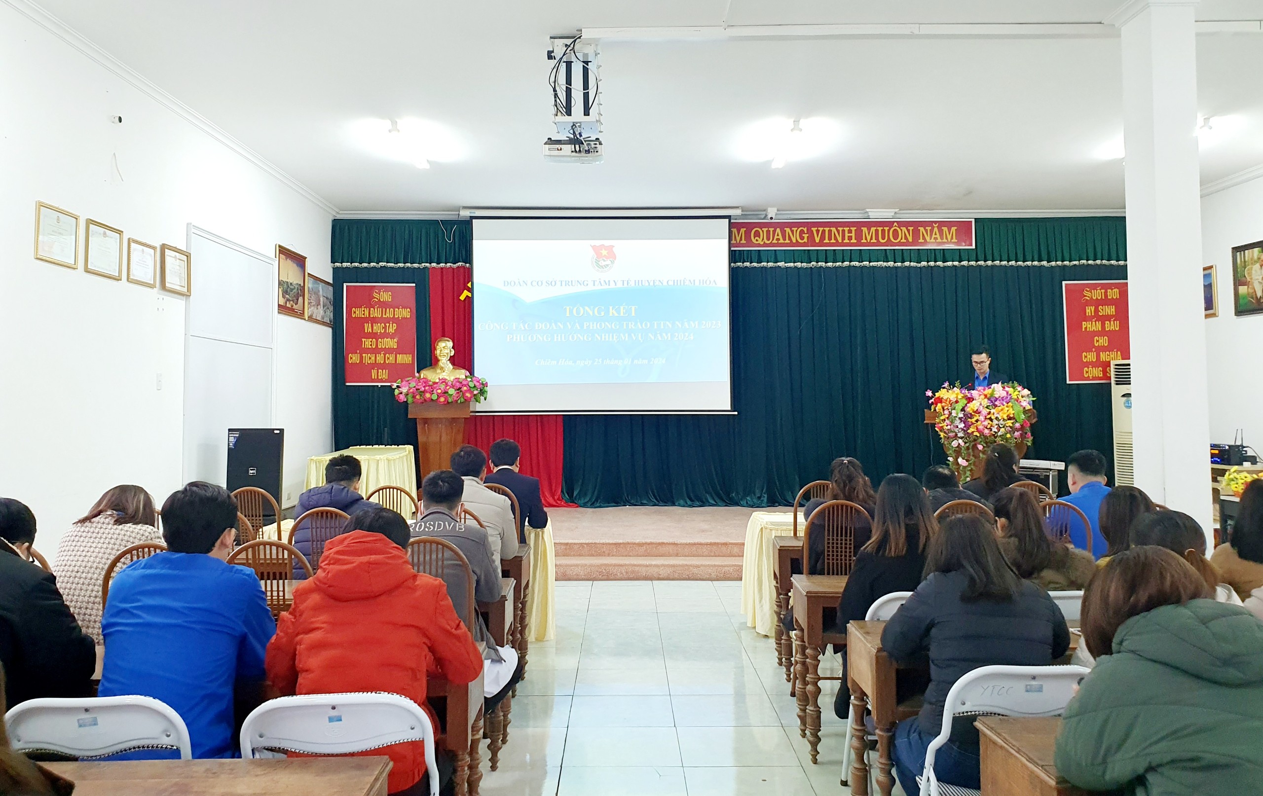 Ngày 25/01/2024, Đoàn cơ sở TTYT huyện Chiêm Hoá tổ chức Hội nghị tổng kết công tác đoàn và phong trào thanh niên năm 2023, triển khai nhiệm vụ 2024. Dự hội nghị có BSCKII. Hà Văn Linh – Bí thư Đảng uỷ, Giám đốc TTYT, cùng đông đảo đoàn viên Đoàn cơ sở TTYT huyện Chiêm Hoá.