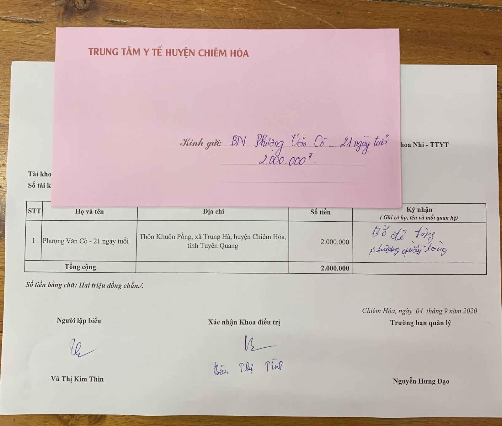 Hỗ trợ bệnh nhân có hoàn cảnh khó khăn đang điều trị tại khoa Nhi - TTYT Chiêm Hóa