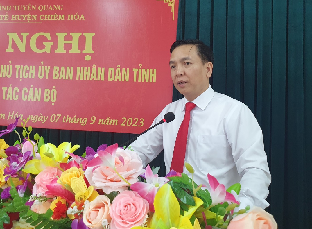 Tại hội nghị, Chánh Văn phòng sở Y tế đã công bố Quyết định số 989/QĐ-UBND ngày 05/09/2023 của UBND tỉnh Tuyên Quang về việc chuyển công tác và bổ nhiệm có thời hạn (5 năm) đối với ông Hà Văn Linh, Trưởng khoa Phẫu thuật – Gây mê hồi sức, Bệnh viện Đa khoa tỉnh Tuyên Quang giữ chức vụ Giám đốc Trung tâm Y tế huyện Chiêm Hoá.