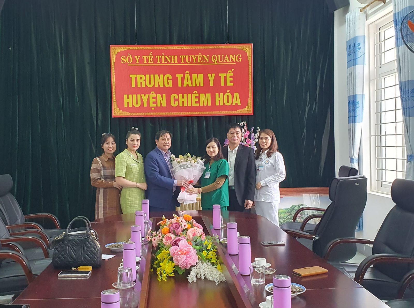 Lãnh đạo Ban Tuyên giáo Huyện Uỷ, Lãnh đạo Khối Nội chính - Doanh nghiệp, Lãnh đạo Công an huyện, Lãnh đạo ngân hàng Viettinbank chi nhánh Chiêm Hoá, Lãnh đạo VNPT Chiêm Hoá, Đoàn xã Linh Phú, Đoàn xã Tri Phú, Đoàn xã Nhân Lý tặng hoa chúc mừng TTYT huyện Chiêm Hoá nhân ngày 27/02.
