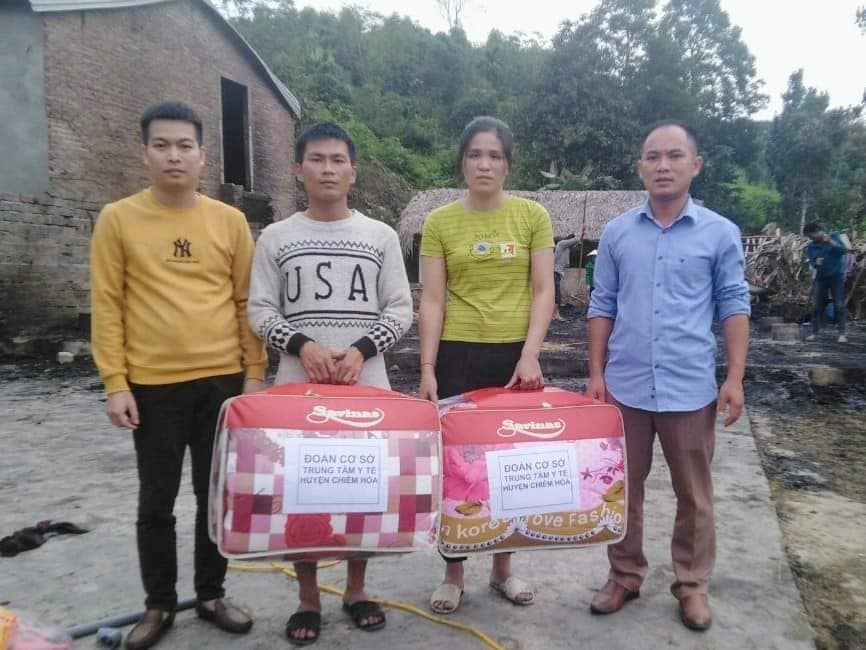 Ngày 14/11/2019, lãnh đạo TTYT cùng Đoàn cơ sở TTYT huyện Chiêm Hoá đã đến thăm hỏi, động viên gia đình ông Hà Hữu Danh, thôn Làng Ngoã, xã Xuân Quang bị hoả hoạn cháy hoàn toàn 1 nhà sàn 3 gian.