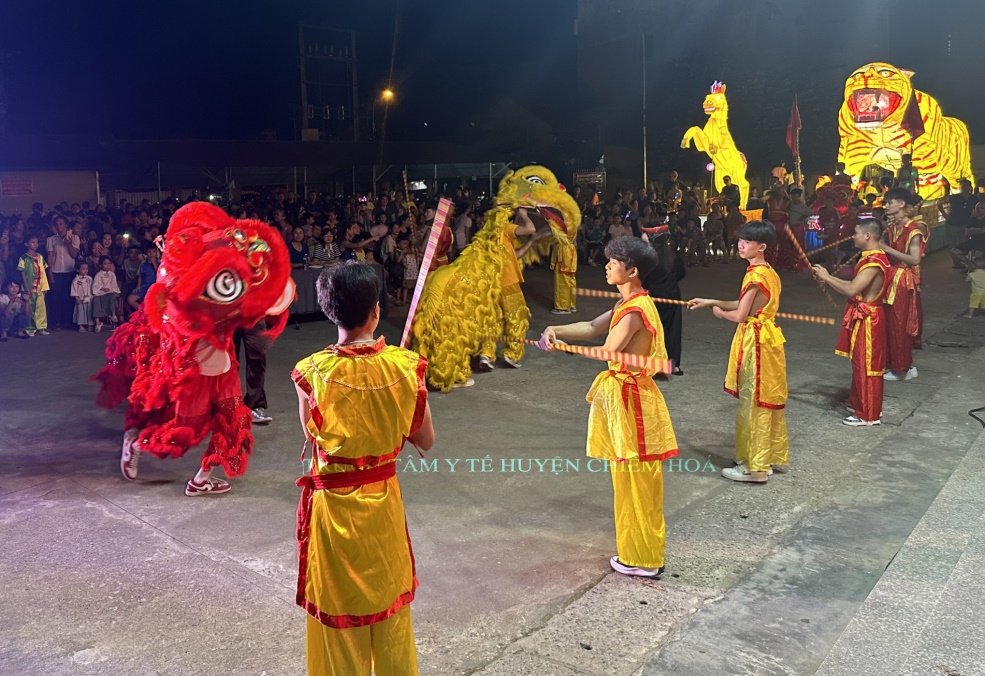 Trong đêm hội, các cháu thiếu nhi được thưởng thức các tiết mục văn nghệ đặc sắc tạo không khí vui tươi, ấm áp trong ngày hội. Sau chương trình văn nghệ, các cháu thiếu nhi đã cùng nhau vui phá cỗ trăng rằm.