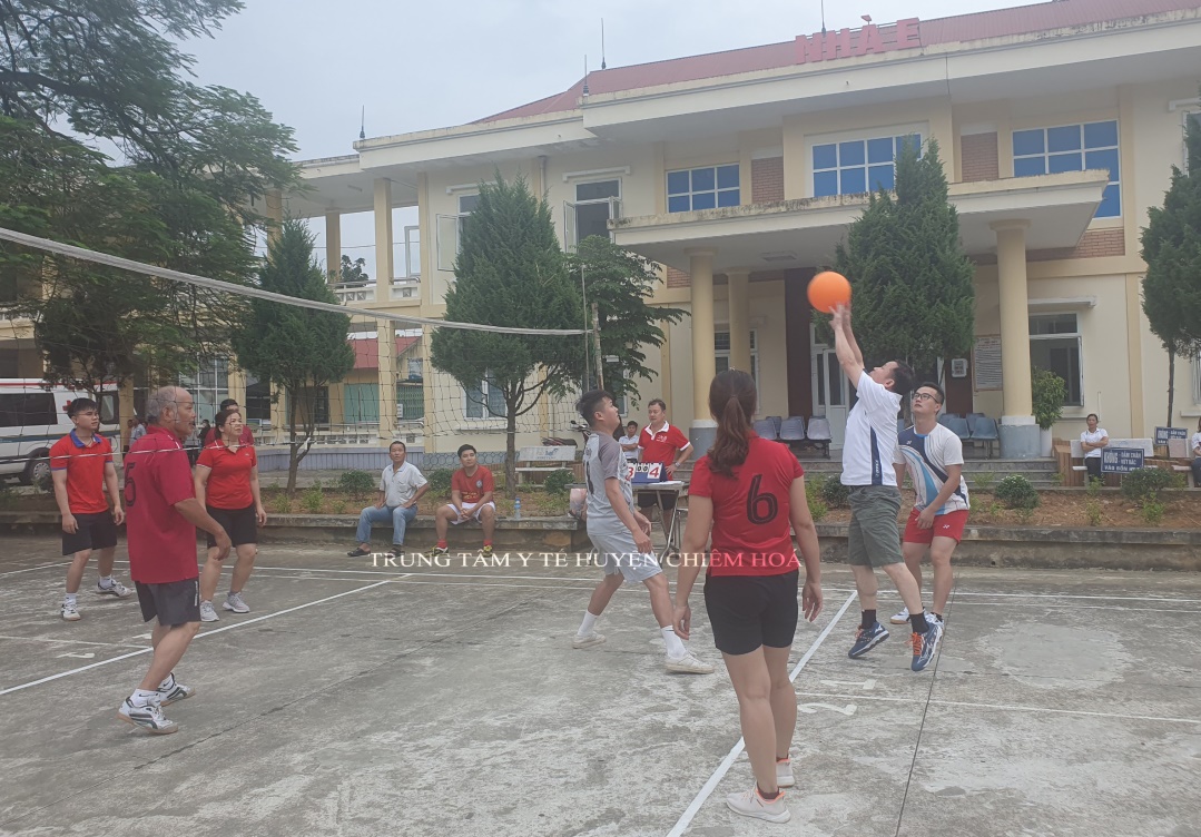 Tham gia giải có 4 đội bóng với hơn 40 vận động viên là sự kết hợp từ các khoa, phòng trong TTYT và TYT xã. Giải bóng chuyền hơi được tổ chức với hình thức Nam, Nữ kết hợp. Các đội thi đấu với thể thức vòng tròn tính điểm chọn ra đội nhất, nhì, ba.