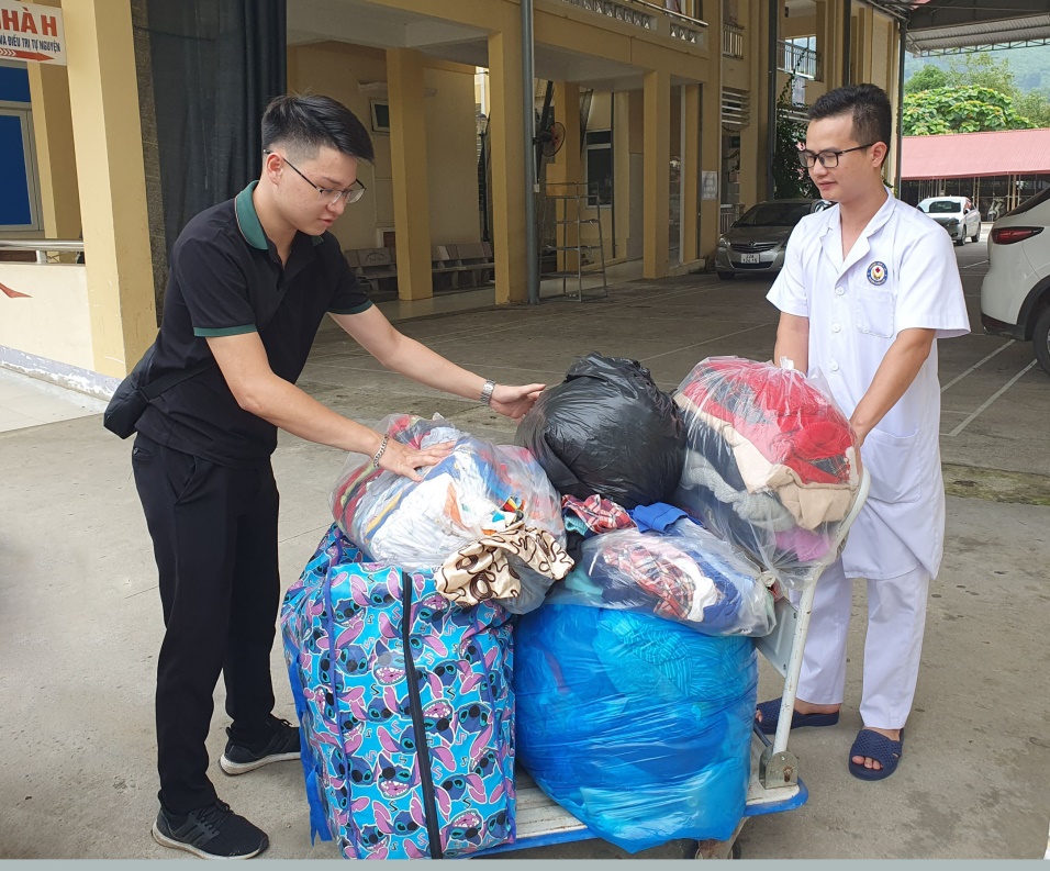 Sáng ngày 23/8, anh Nguyễn Trung Hiếu, Công ty Thái Bình Dương đã ủng hộ 9 túi quần áo cho tủ quần áo miễn phí của TTYT huyện chiêm Hoá.