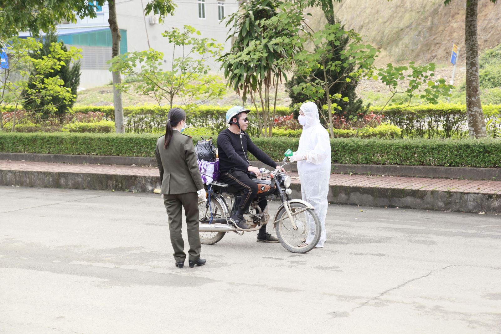 Tại chốt kiểm dịch xã Đội Bình (Km18 đường Tuyên Quang - Hà Nội), nơi tiếp giáp với tỉnh Phú Thọ, đoàn kiểm tra liên ngành bao gồm: Công an, Quân đội, Y tế và Lãnh đạo UBND huyện Yên Sơn đã tổ chức phân công kíp trực với 7 đồng chí/kíp, chia làm 3 ca sáng/chiều/tối có nhiệm vụ đo thân nhiệt hành khách và tiến hành phun khử khuẩn đối với các phương tiện giao thông đi vào địa bàn tỉnh Tuyên Quang.