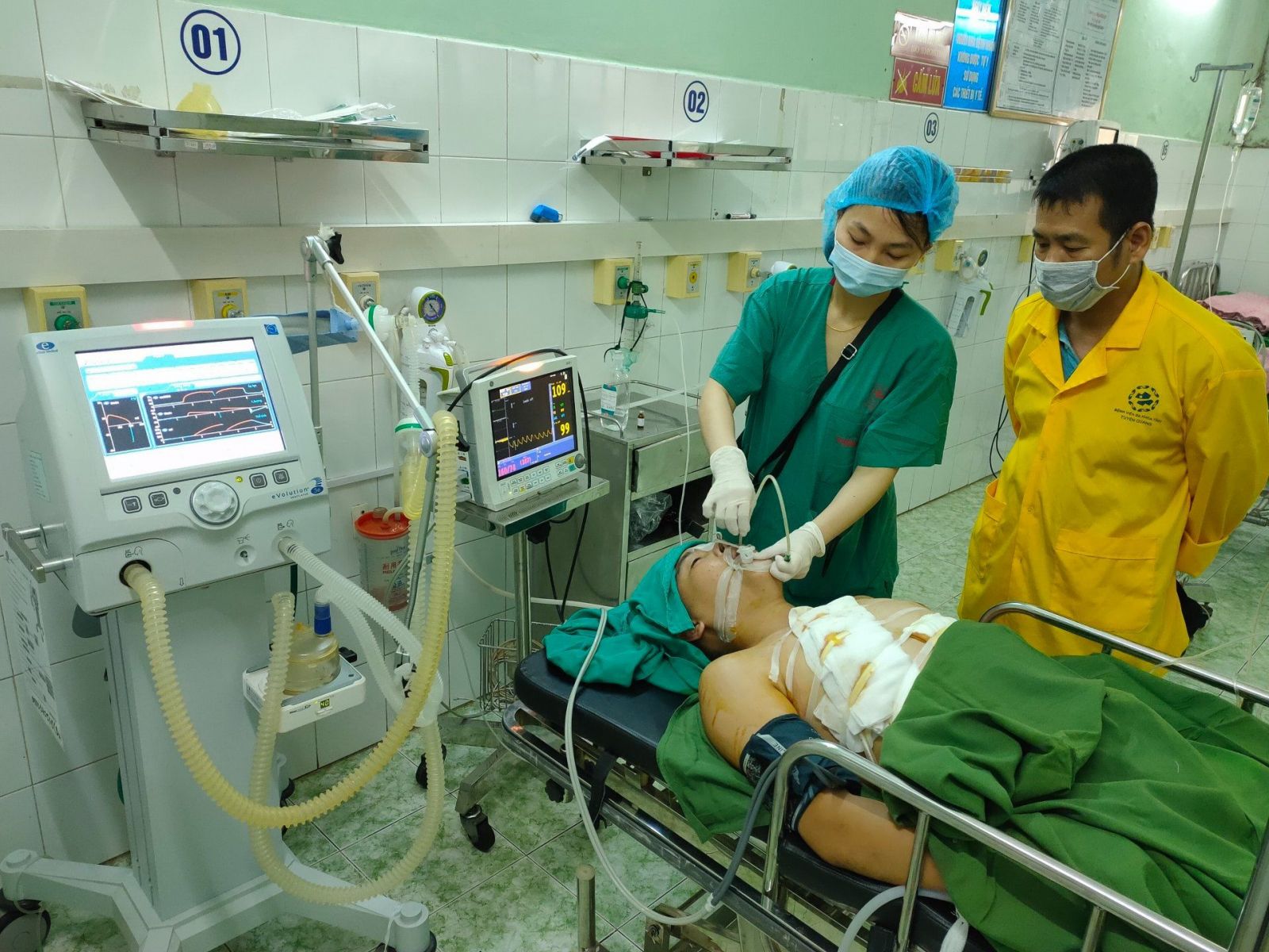 Thạc sỹ - Bác sỹ Nguyễn Hồng Sơn - Trưởng khoa Ung bướu, Bệnh viện đa khoa tỉnh (Trưởng kíp phẫu thuật cho bệnh nhân H) cho biết: Bệnh nhân H được chẩn đoán sock mất máu nặng, suy hô hấp do vết thương ngực hở, được chuyển thẳng khoa phẫu thuật – gây mê hồi với với ê kíp gây mê đã chuẩn bị sẵn từ trước liên hoàn.