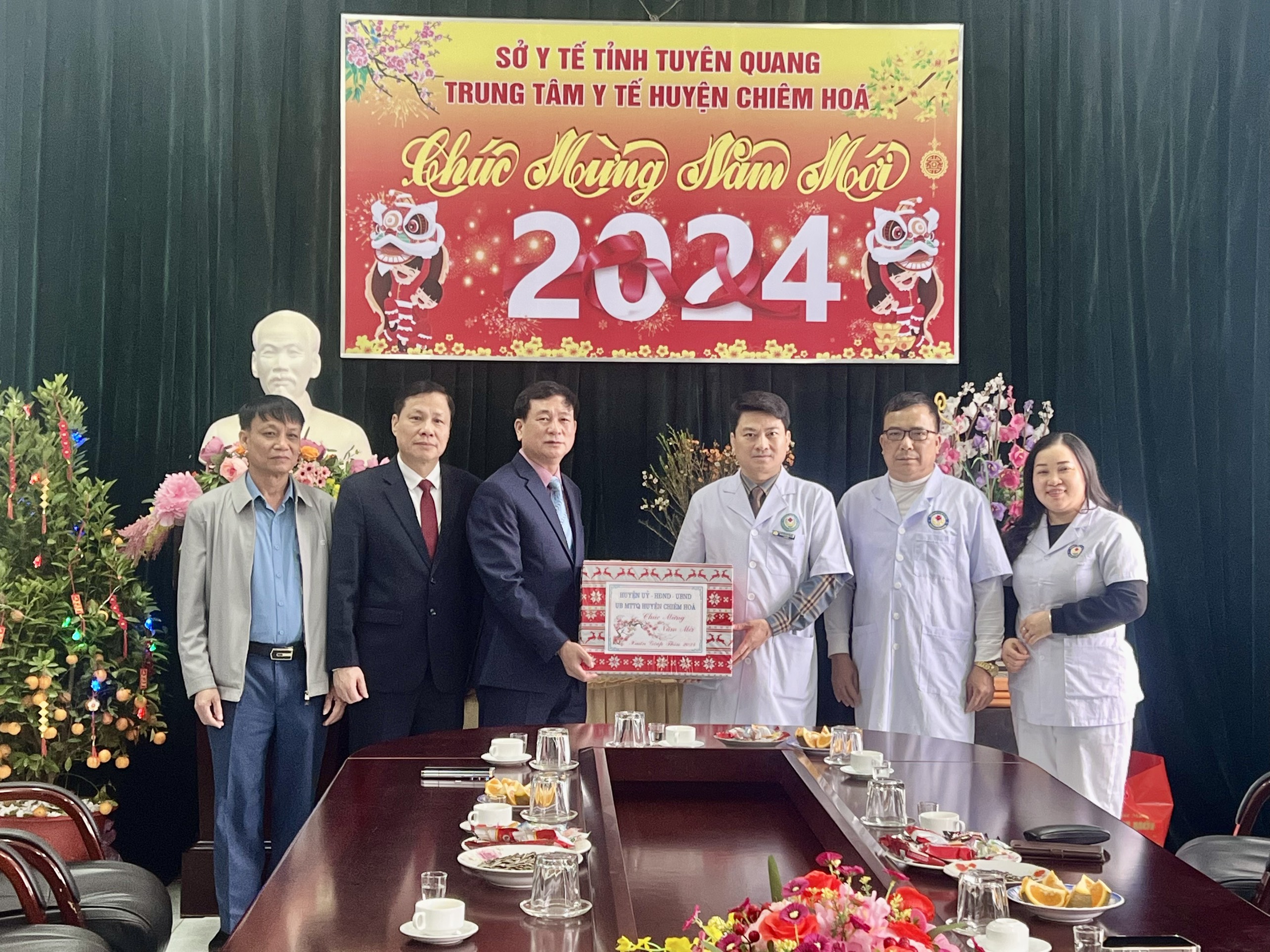 Chiều ngày 09/02/2024, Đ/c Hà Đức Tập - Phó Bí thư Thường trực Huyện ủy, Chủ tịch HĐND huyện, Đ/c Nguyễn Tiến Dũng - Phó Bí thư Huyện ủy, Chủ tịch UBND huyện, cùng lãnh đạo các phòng ban chuyên môn của huyện Chiêm Hoá đã đến thăm, tặng quà TTYT huyện nhân dịp Tết Nguyên đán Giáp Thìn 2024.
