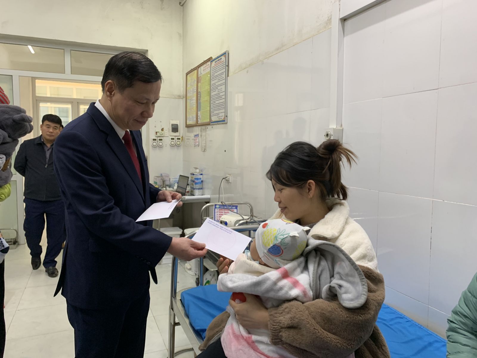Đ/c Nguyễn Tiến Dũng - Phó Bí thư Huyện ủy, Chủ tịch UBND huyện tặng quà bệnh nhân đang điều trị nội trú tại khoa Nhi
