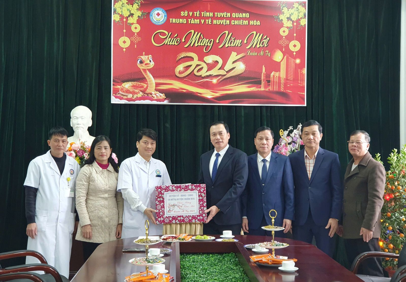 Các đồng chí lãnh đạo huyện Chiêm Hoá đến thăm và tặng quà Tết tại TTYT