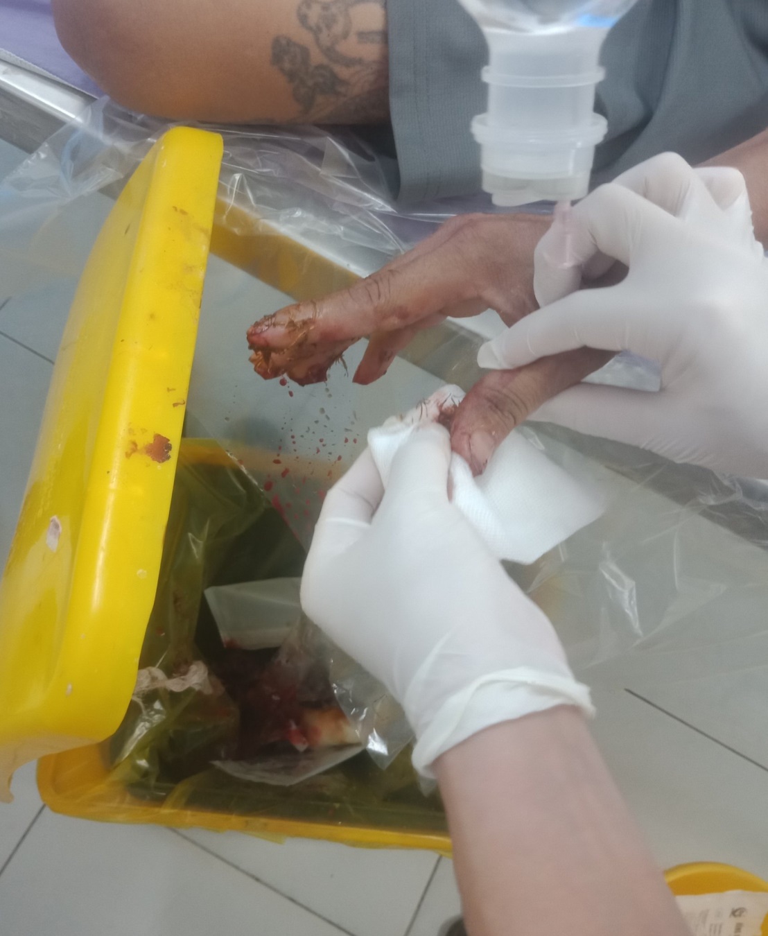 Xử lý vết thương cho bệnh nhân bị tai nạn lao động