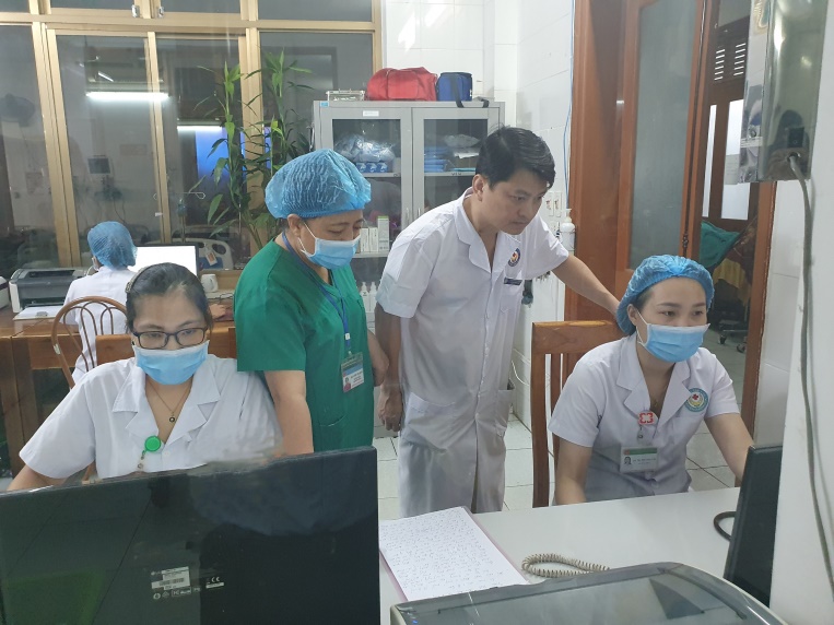 BS Hà Văn Linh – Giám đốc TTYT huyện thăm, khám cho bệnh nhân tại khoa Cấp cứu - Hồi sức tích cực và chống độc.