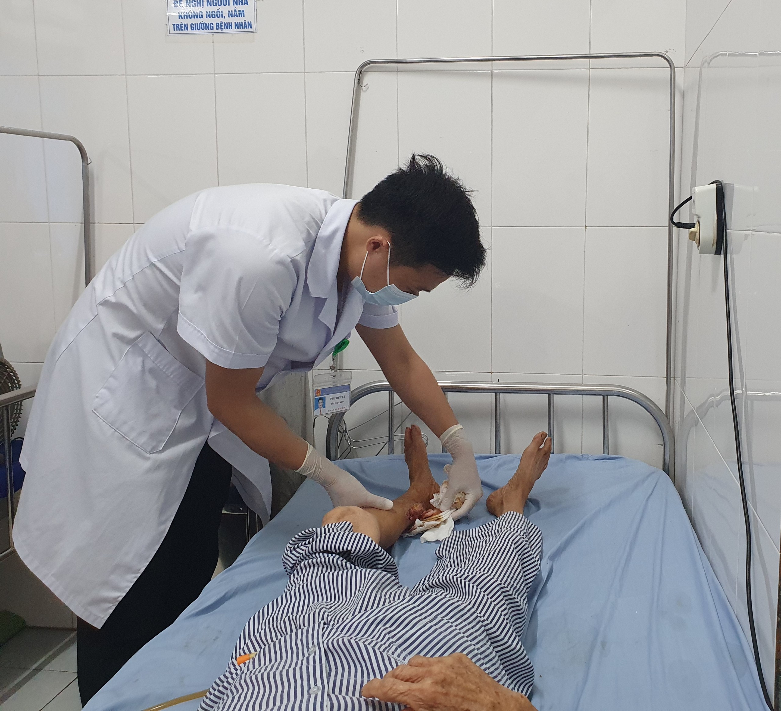 Bệnh nhân nữ 84 tuổi (xã Trung Hòa), vào viện do bị chó nhà hàng xóm cắn vào cẳng chân