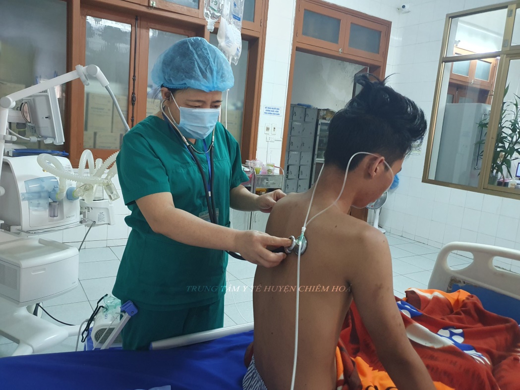 Bệnh nhân H.Đ.H đi bơi bị chuột rút và chìm xuống nước khoảng 3 phút, được người nhà vớt lên và đưa đến TTYT huyện Chiêm Hoá cấp cứu trong tình trạng tím tái, khó thở, mồ hôi chân tay lạnh, ho khạc bọt hồng, tim nhịp nhanh đều, hai phổi có rale ẩm. Bs Nguyễn Thị Hiền – Trưởng khoa Cấp cứu, Hồi sức tích cực và Chống độc cho biết: Sau khi tiếp nhận, bệnh nhân đã được hút đờm, dịch mũi họng, thở ô xy, nằm tư thế nửa nằm, nửa ngồi, hai chân thõng, garo ba gốc chi luân chuyển…Bệnh nhân trong tình trạng suy hô hấp không cải thiện, SPO2 tụt thấp, ngay lập tức các bác sỹ khoa Cấp cứu – Hồi sức tích cực và Chống độc đã đặt ống nội khí quản, thở máy áp lực dương liên tục, sử dụng thuốc kháng sinh liều cao, hỗ trợ dinh dưỡng. Sau 5 ngày điều trị tích cực, bệnh nhân cai được máy thở, tình trạng sức khỏe dần ổn định.