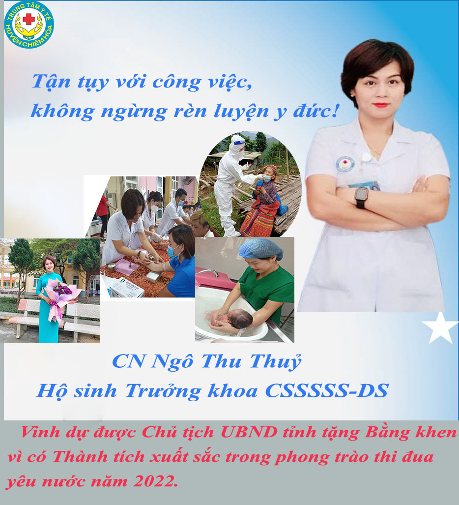 Năm 2005, chị Ngô Thu Thuỷ nhận công tác tại khoa CSSSSS – DS, chị tâm niệm: đã làm thì phải làm hết khả năng trên tinh thần trách nhiệm cao nhất với bệnh nhân. Năm 2013, chị Thuỷ được bổ nhiệm làm Hộ sinh trưởng khoa CSSSSS – DS. Công việc hàng ngày của chị và đồng nghiệp là theo dõi sản phụ trong suốt thời gian chuyển dạ, chăm sóc sức khỏe mẹ và trẻ sau sinh.