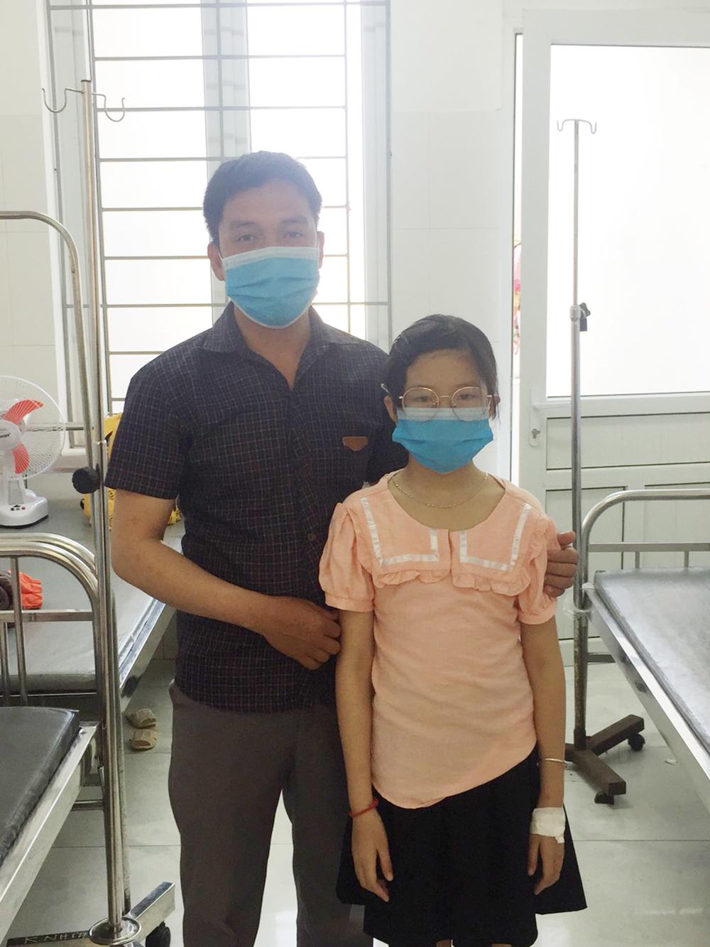 Anh Nguyễn Văn Lượng và con gái tại Trung tâm Y tế huyện Chiêm Hóa. Ảnh do Trung tâm Y tế huyện Chiêm Hóa cung cấp