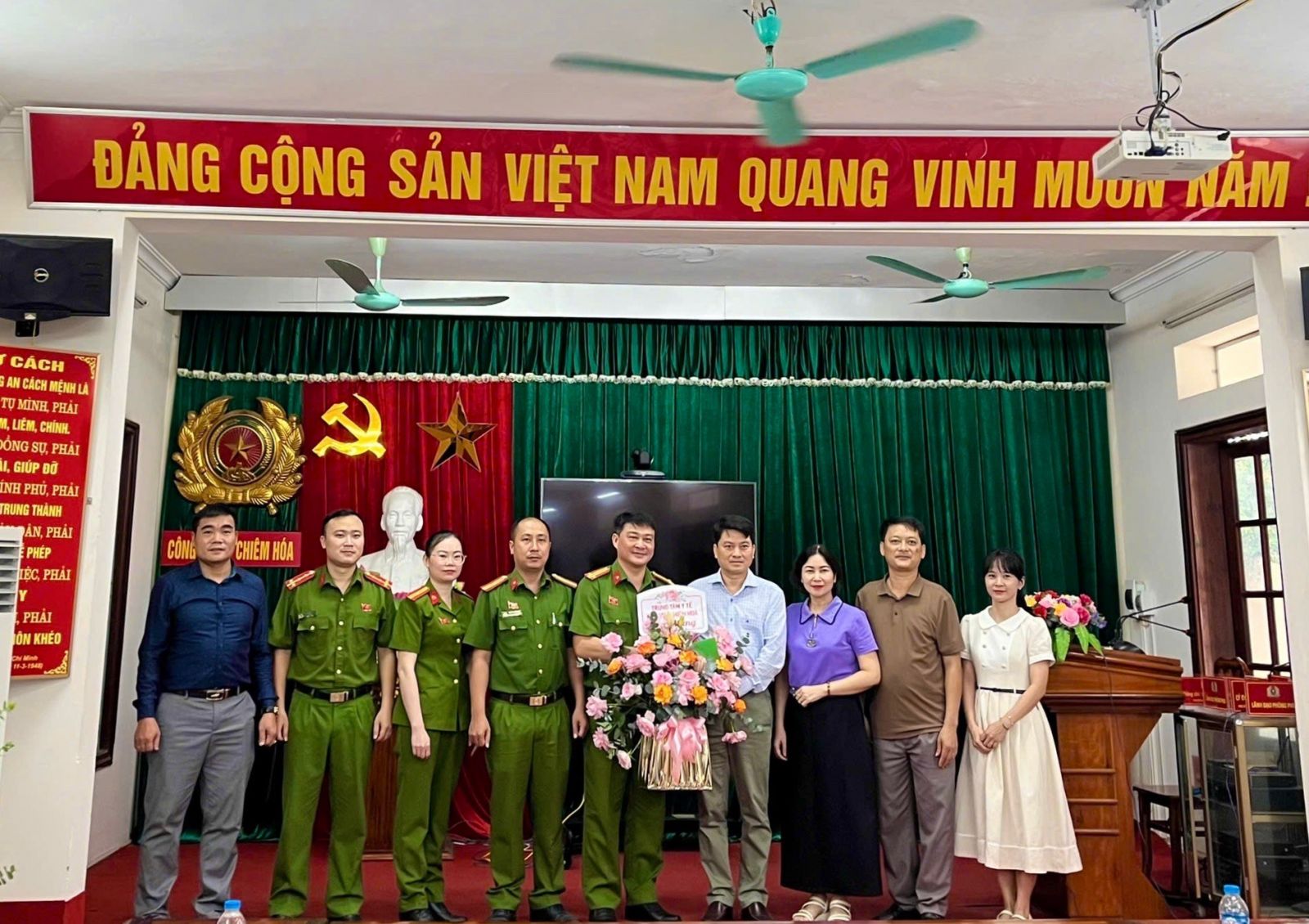Nhân dịp đặc biệt này, Ban Giám đốc TTYT khu vực Chiêm Hóa đã đến thăm và tặng hoa chúc mừng Công an xã Chiêm Hoá kỷ niệm 80 năm ngày Truyền thống Công an nhân dân và 20 năm ngày hội Toàn dân bảo vệ an ninh Tổ quốc.