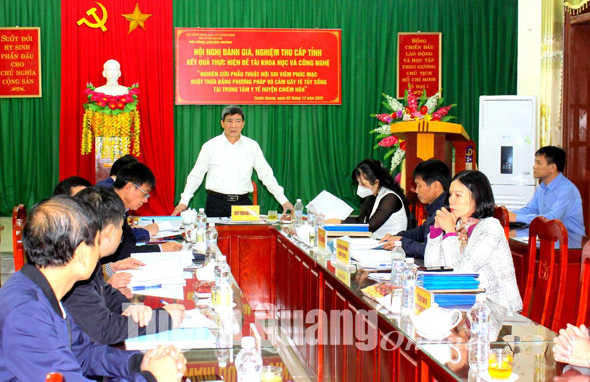 Sáng 2-12, tại Sở Khoa học và Công nghệ, Hội đồng Khoa học - Công nghệ tỉnh, Hội đồng chuyên ngành tổ chức đánh giá nghiệm thu cấp tỉnh kết quả thực hiện đề tài khoa học “Nghiên cứu phẫu thuật nội soi viêm phúc mạc ruột thừa bằng phương pháp vô cảm gây tê tuỷ sống tại Trung tâm Y tế huyện Chiêm Hoá”.