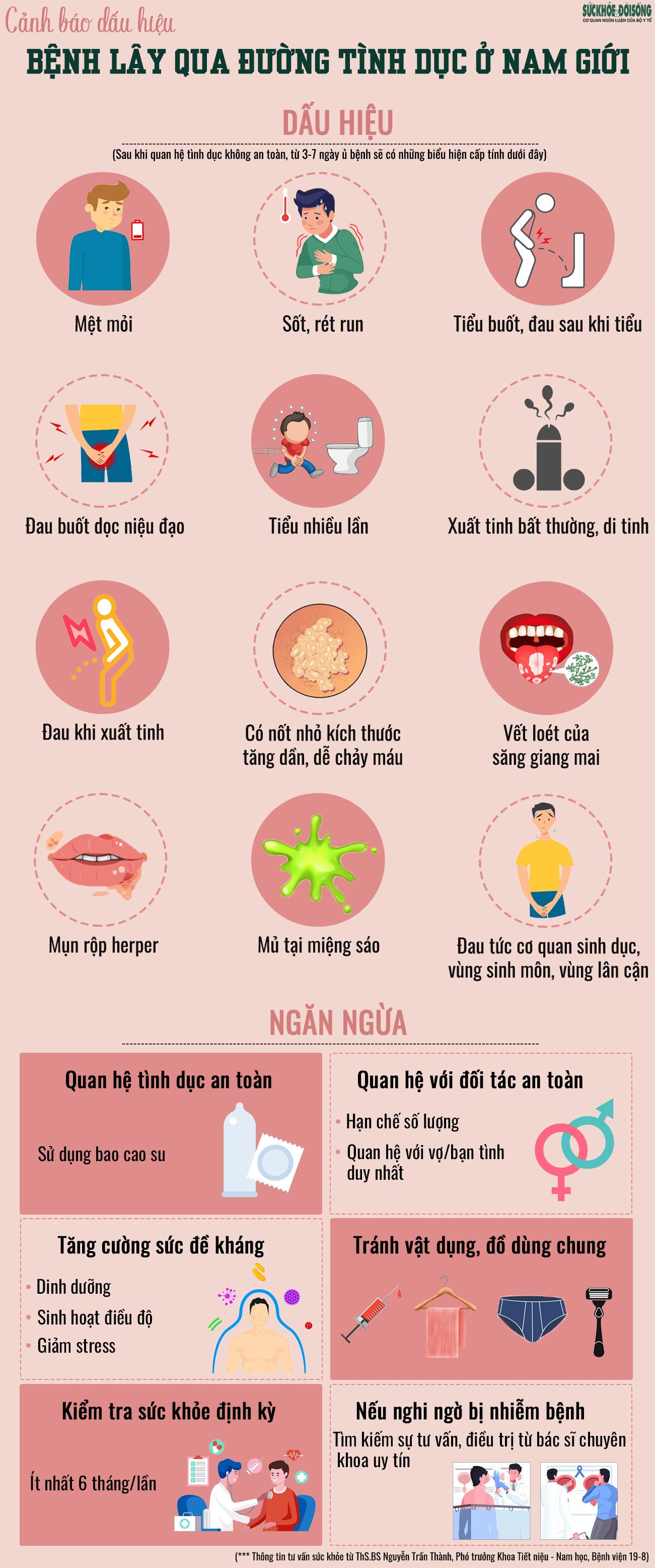 Nam giới mắc bệnh lây qua đường tình dục thường có một số dấu hiệu chung như: