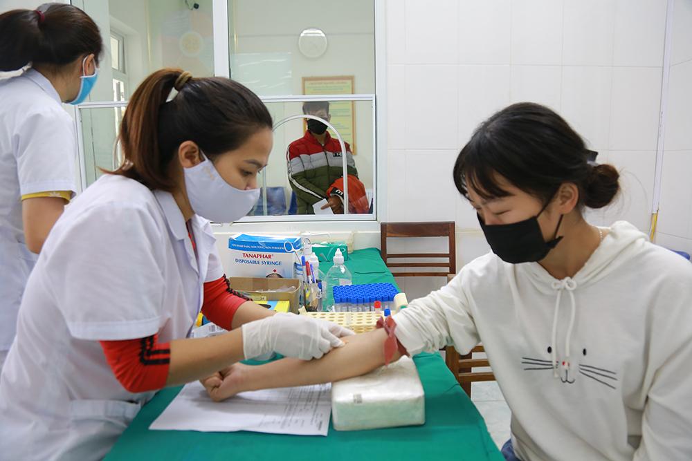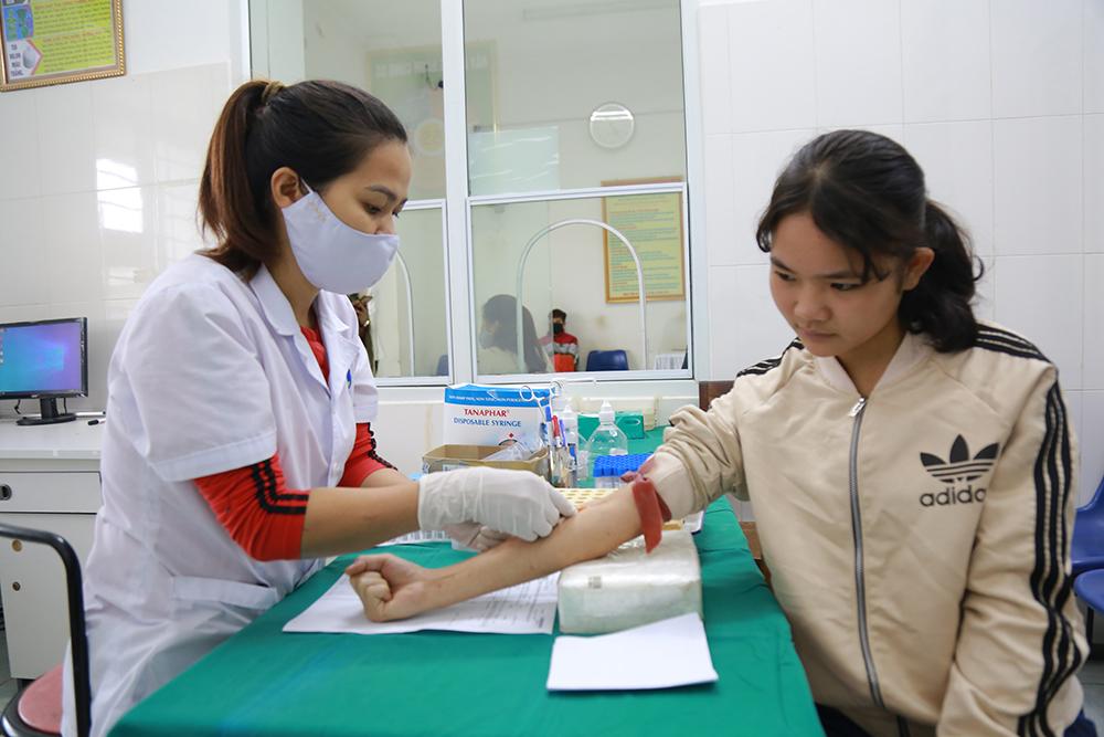 Các sản phụ được lấy máu xét nghiệm gen bệnh tan máu bẩm sinh. Ảnh: Việt Mười