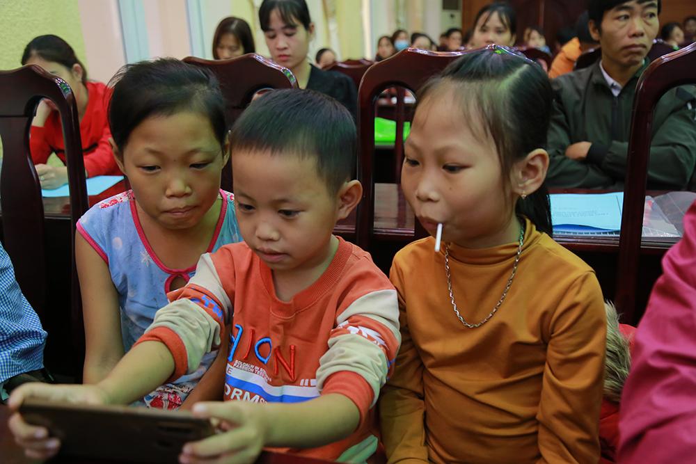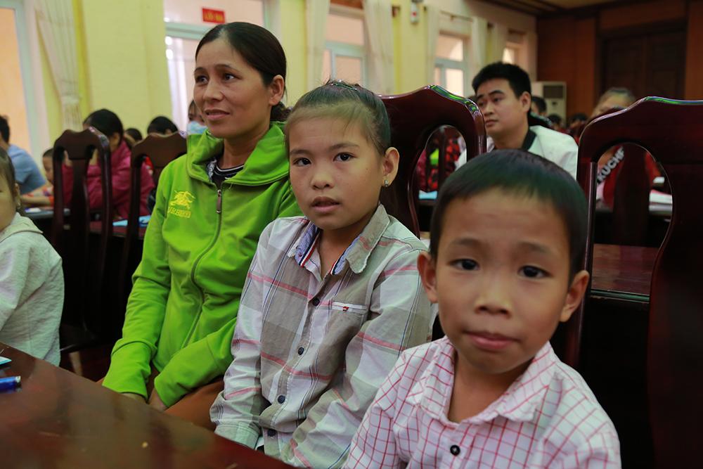 Hình ảnh những bệnh nhân nhi mắc bệnh tan máu bẩm sinh đang điều trị tại Trung tâm Y tế huyện Chiêm Hóa cũng đến tham dự buổi tư vấn