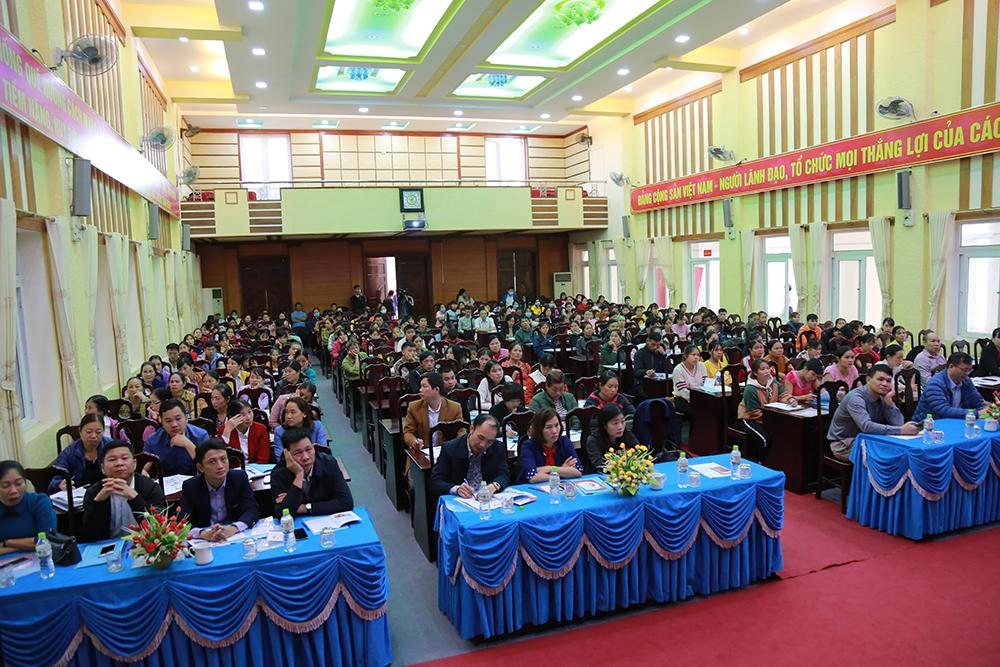 Hội trường Văn hóa huyện Chiêm Hóa chật kín người dân đến tham dự chương trình