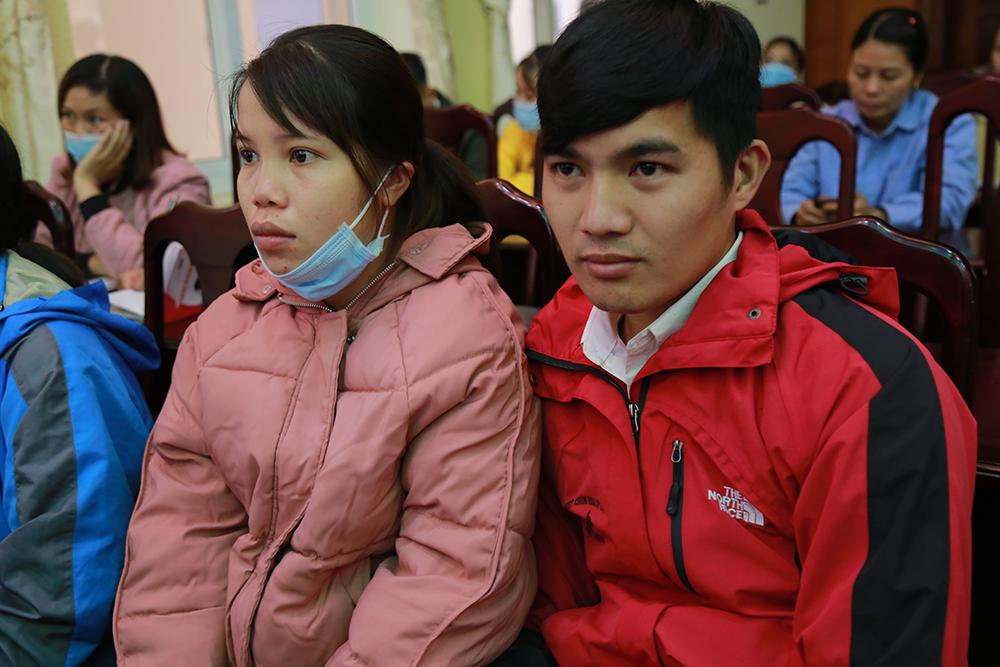 Một cặp vợ chồng trẻ đến tham dự buổi tư vấn