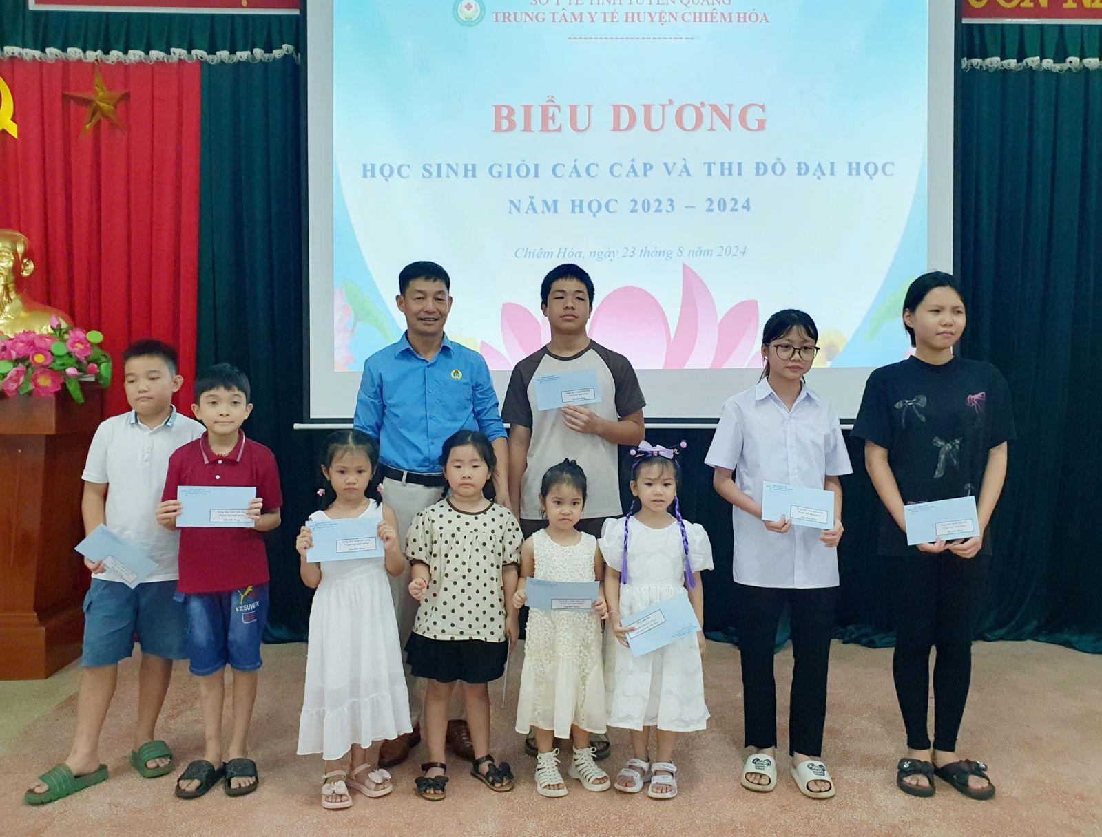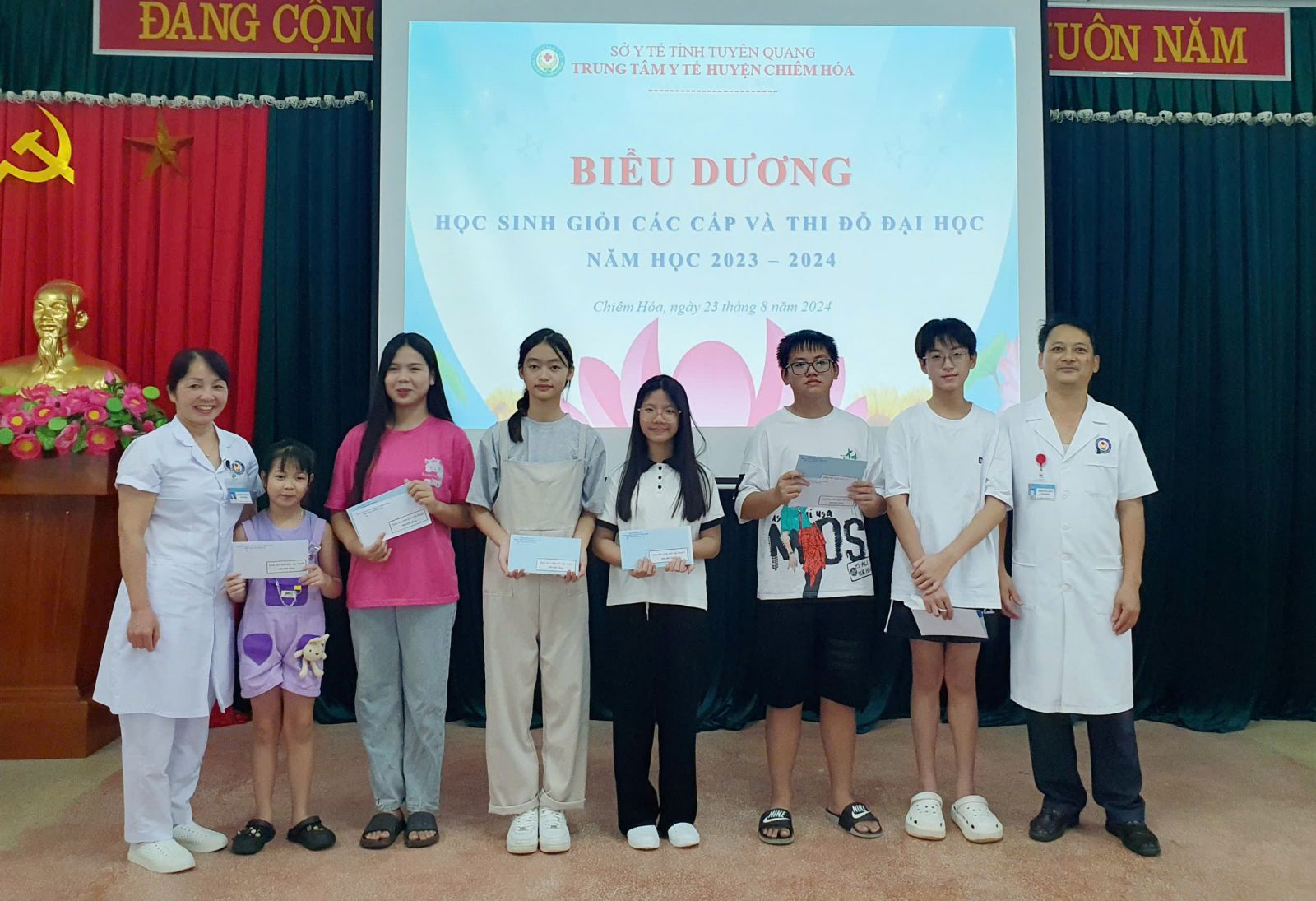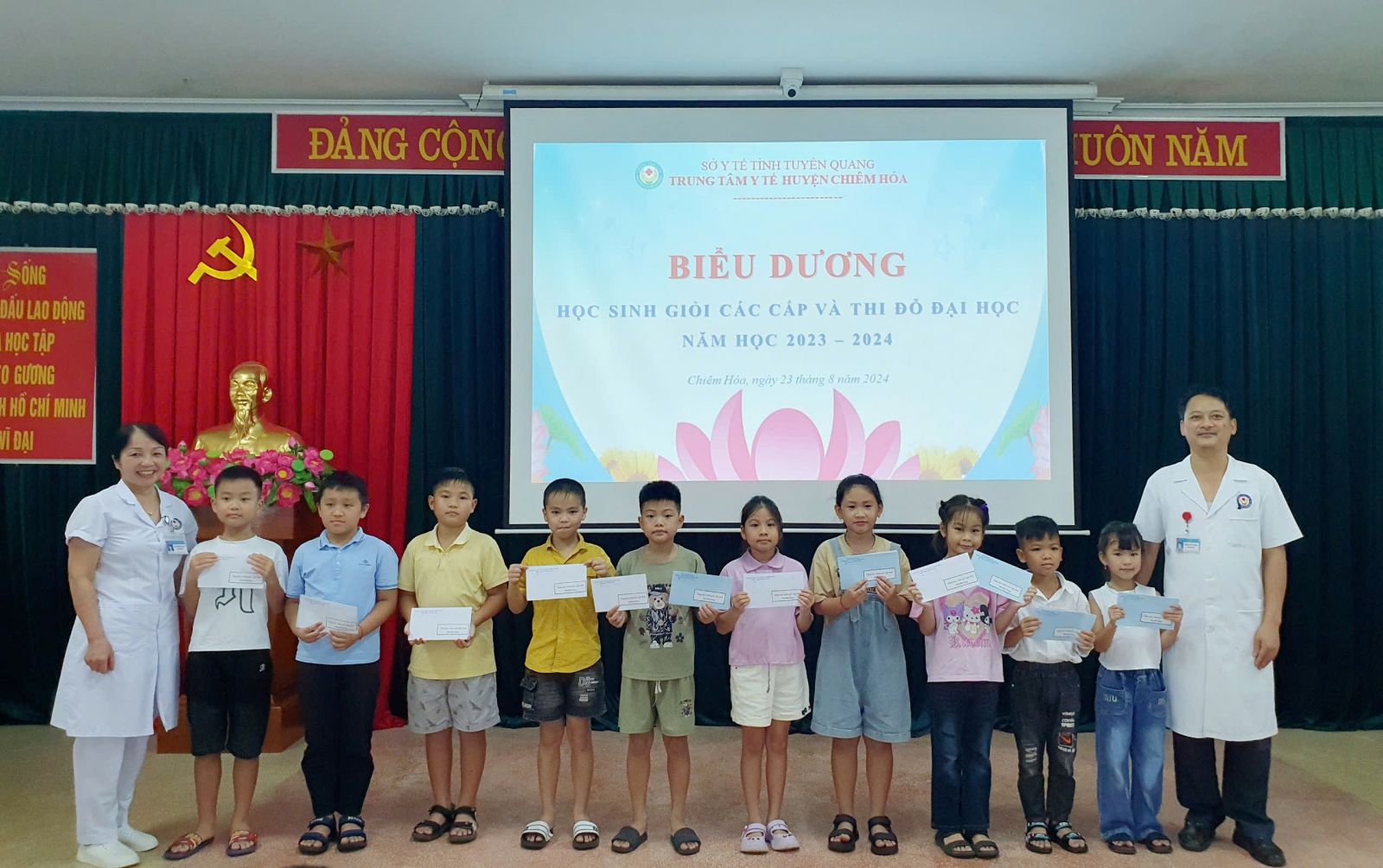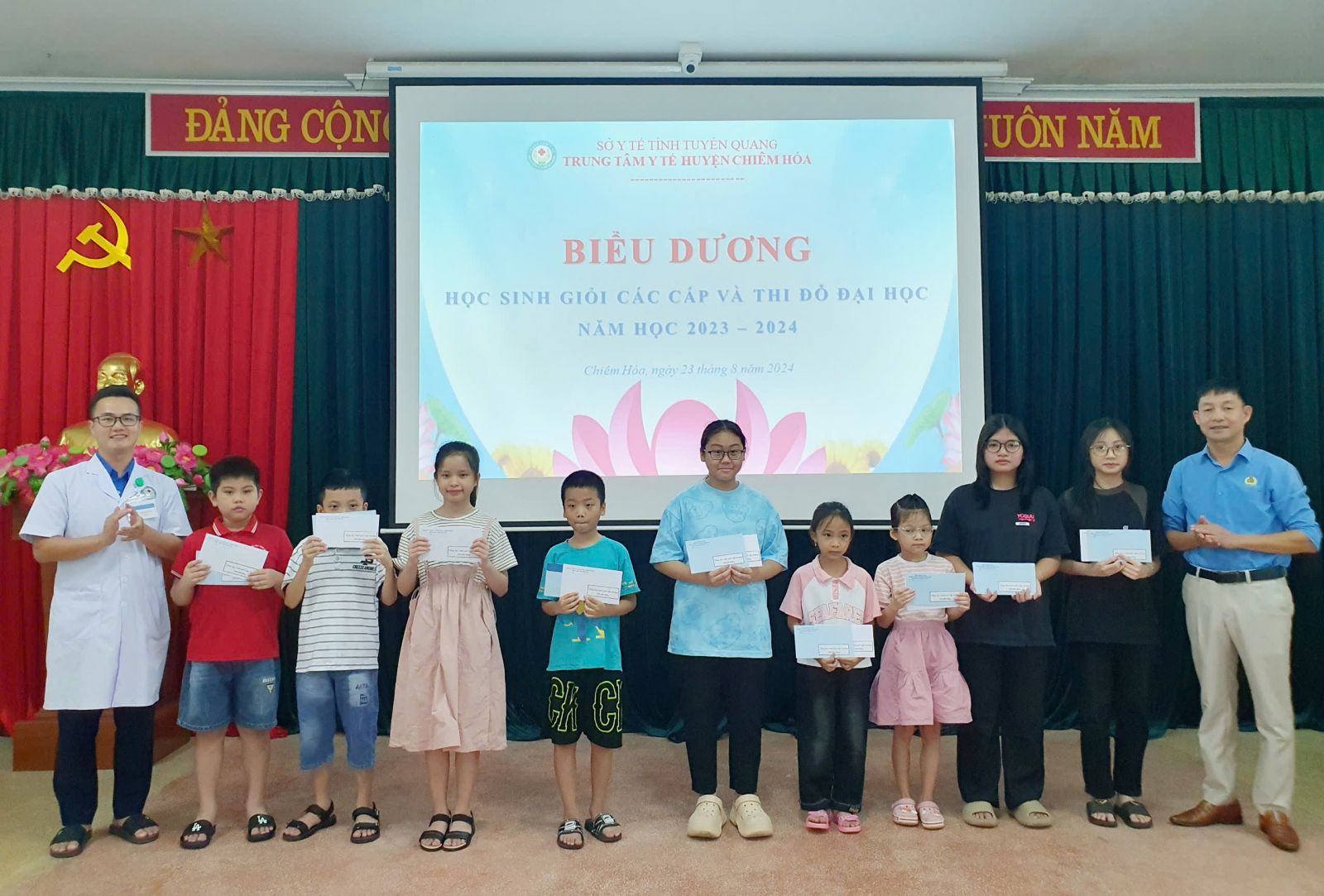 Chiều ngày 23/8, TTYT, Công đoàn cơ sở TTYT huyện Chiêm Hóa tổ chức gặp mặt biểu dương, khen thưởng các cháu học sinh giỏi, học sinh đỗ đại học năm học 2023 - 2024.