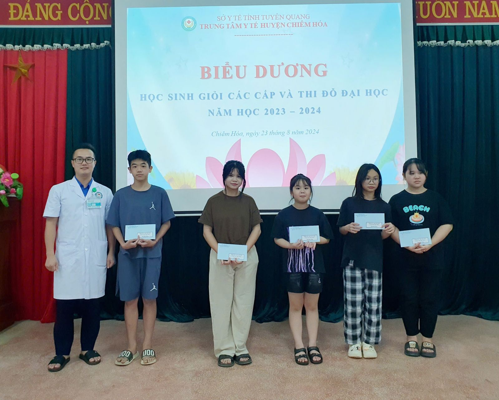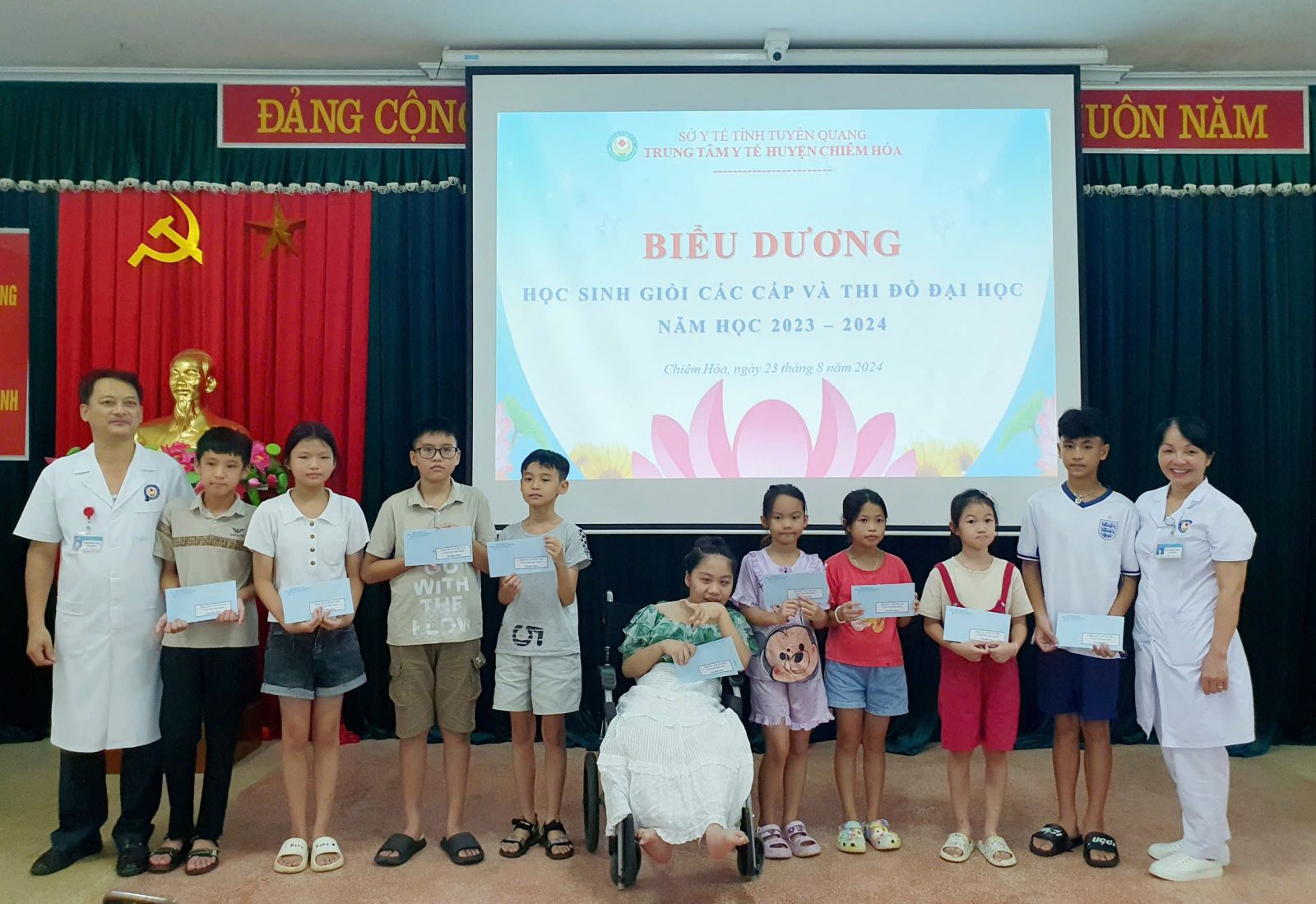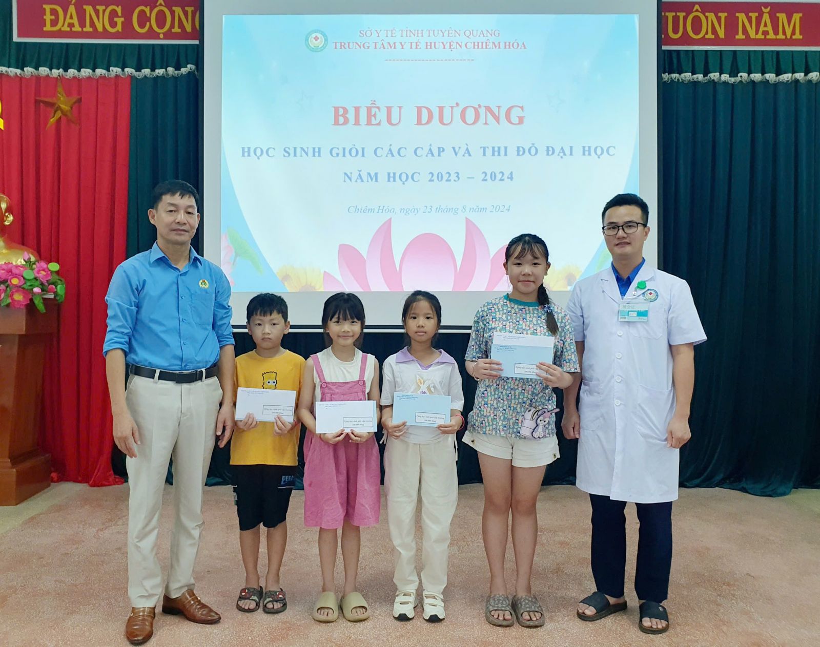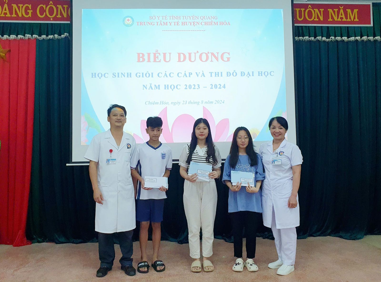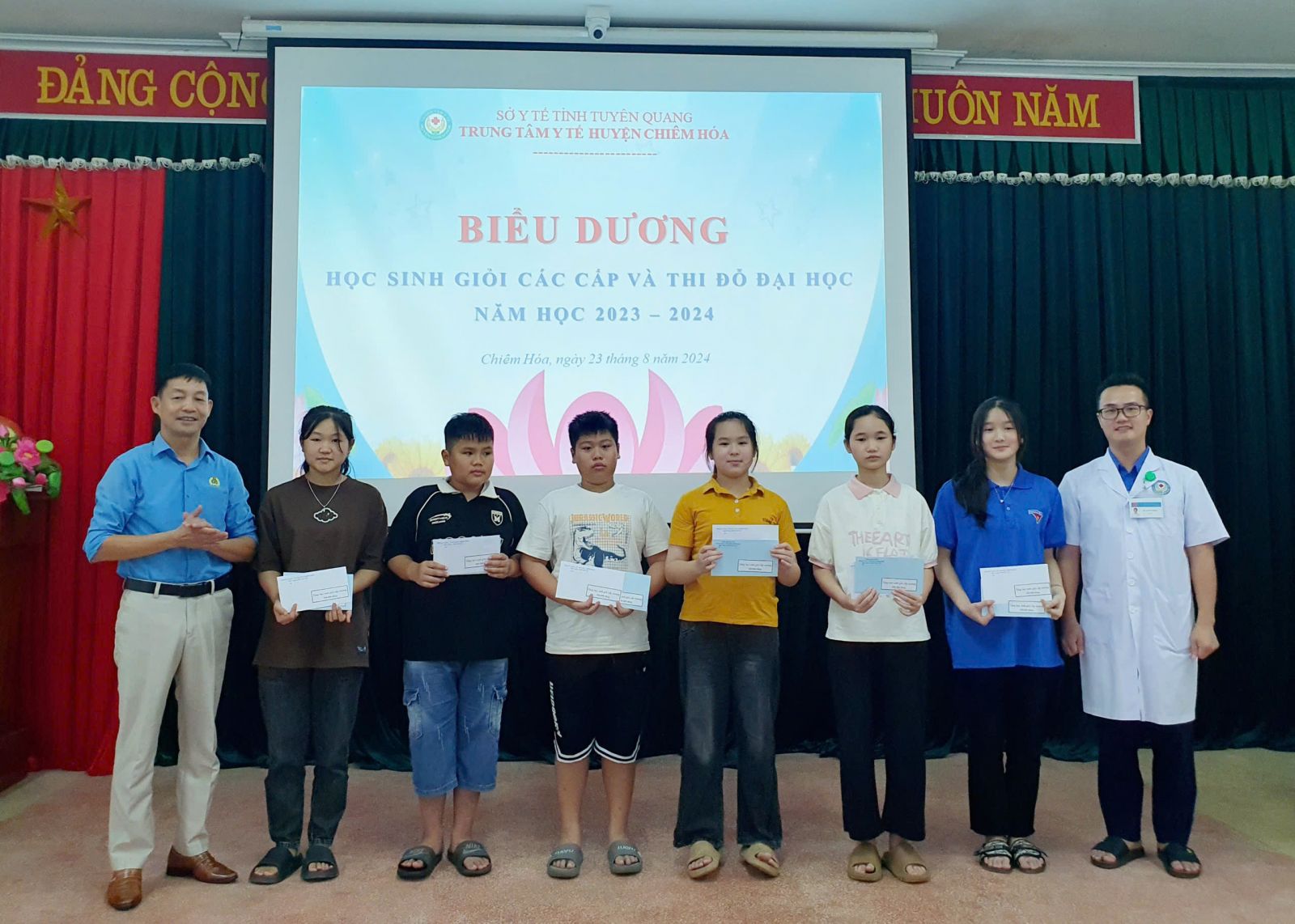 Chiều ngày 23/8, TTYT, Công đoàn cơ sở TTYT huyện Chiêm Hóa tổ chức gặp mặt biểu dương, khen thưởng các cháu học sinh giỏi, học sinh đỗ đại học năm học 2023 - 2024.