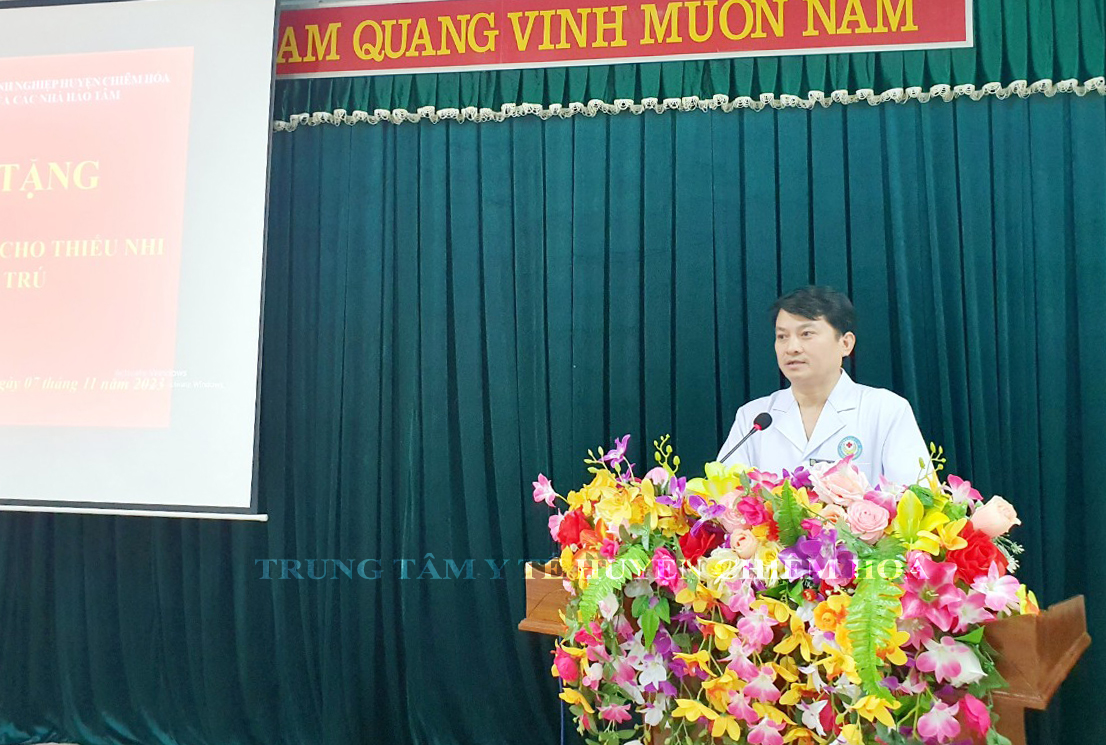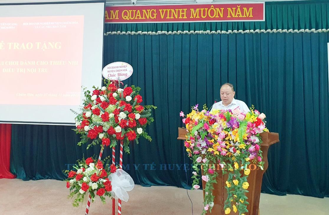 Thay mặt Ban lãnh đạo, nhân viên y tế và cha mẹ bệnh nhi, BS.CKII. Hà Văn Linh, Giám đốc TTYT huyện Chiêm Hoá đã gửi lời cảm ơn tới món quà có ý nghĩa nhân văn và rất thiết thực mà Hội doanh nghiệp huyện Chiêm Hoá cùng các nhà hảo tâm đã dành tặng cho các em nhỏ. Đồng chí Giám đốc TTYT huyện cho biết: