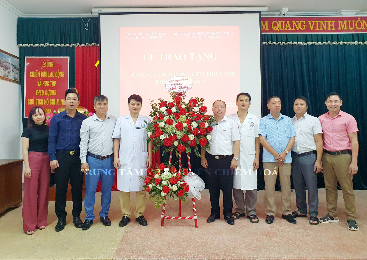 Hội Doanh nghiệp huyện Chiêm Hoá cùng các nhà hảo tâm trao tặng sân chơi trẻ em cho TTYT huyện Chiêm Hoá.