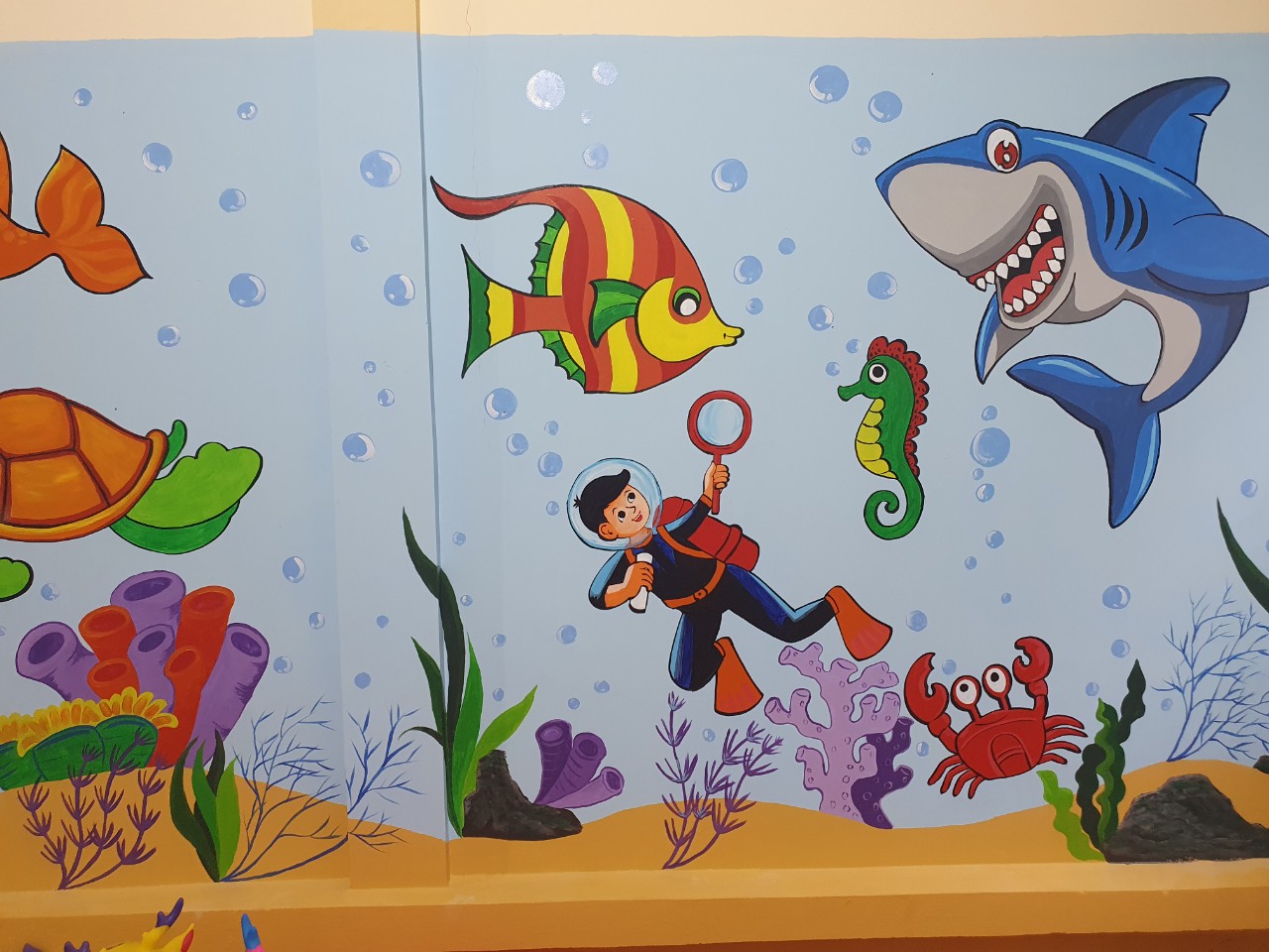 Công trình được triển khai xây dựng trên phần đất có diện tích hơn 80m² và đổ bê tông sạch sẽ cùng nhiều hạng mục, thiết bị như: thú nhún, xích đu, xe lắc…và nhiều hình vẽ vui nhộn.