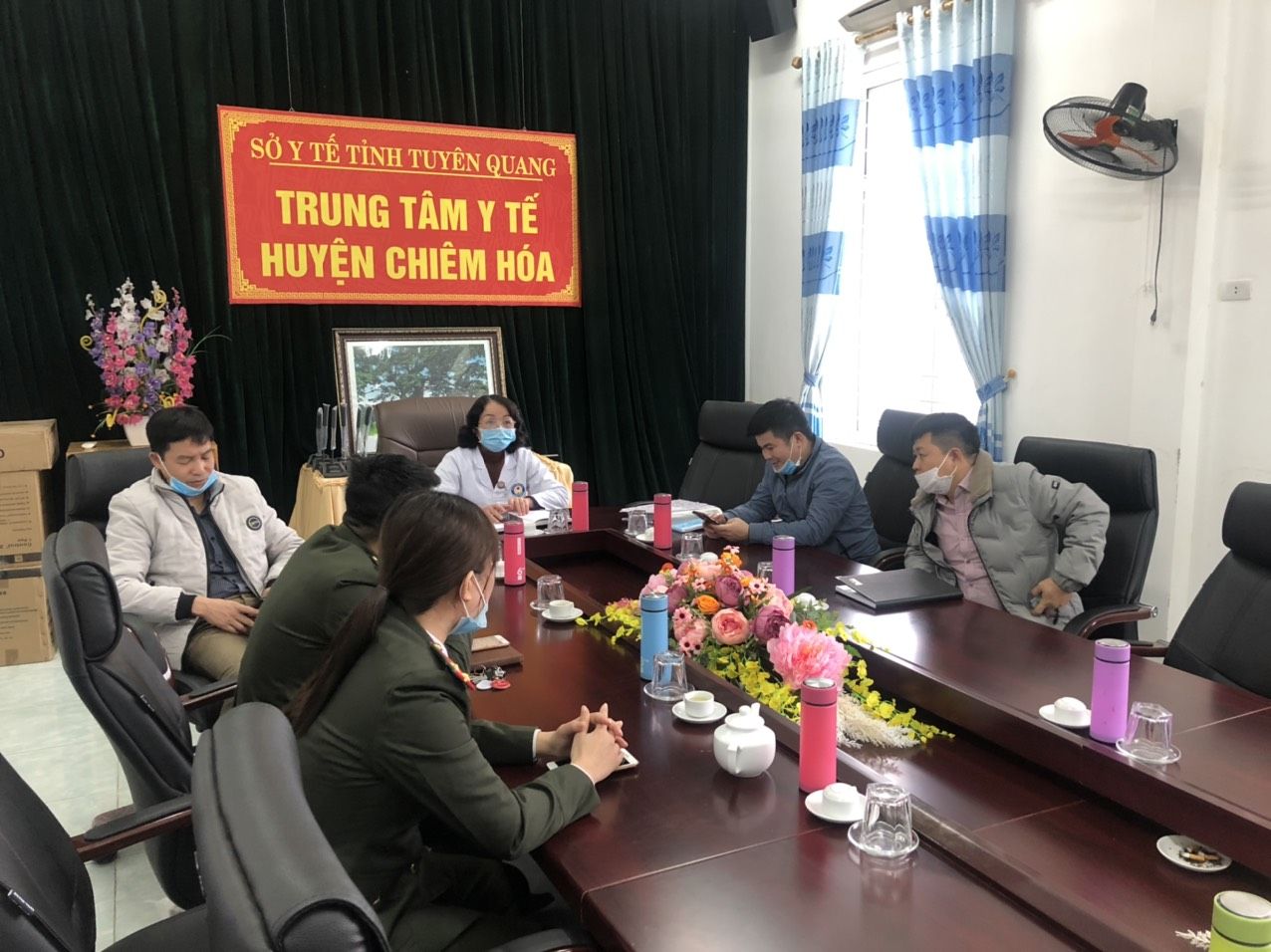 Tại phòng họp trực tuyến TTYT huyện Chiêm Hóa: