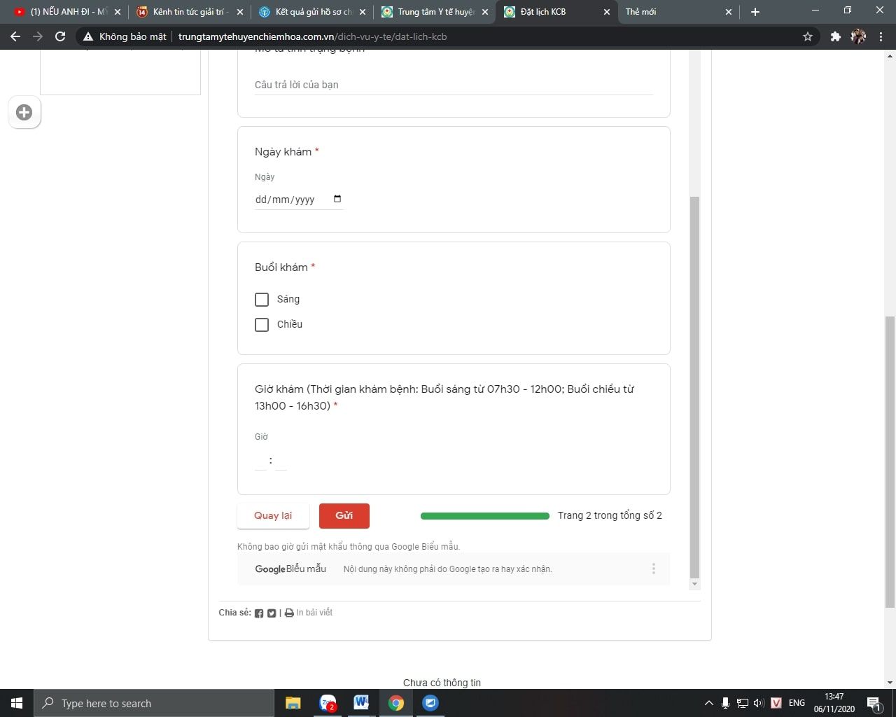 Bước 3: Nhập đầy đủ thông tin theo mẫu (những mục có dấu * là bắt buộc phải điền đầy đủ thông tin). Sau đó nhấn “ GỬI” để kết thúc quá trình đăng kí khám bệnh online.